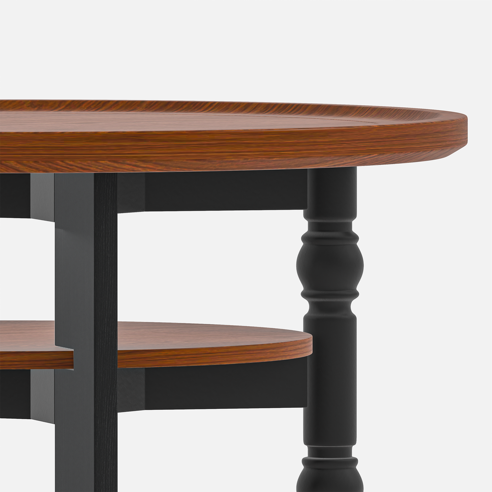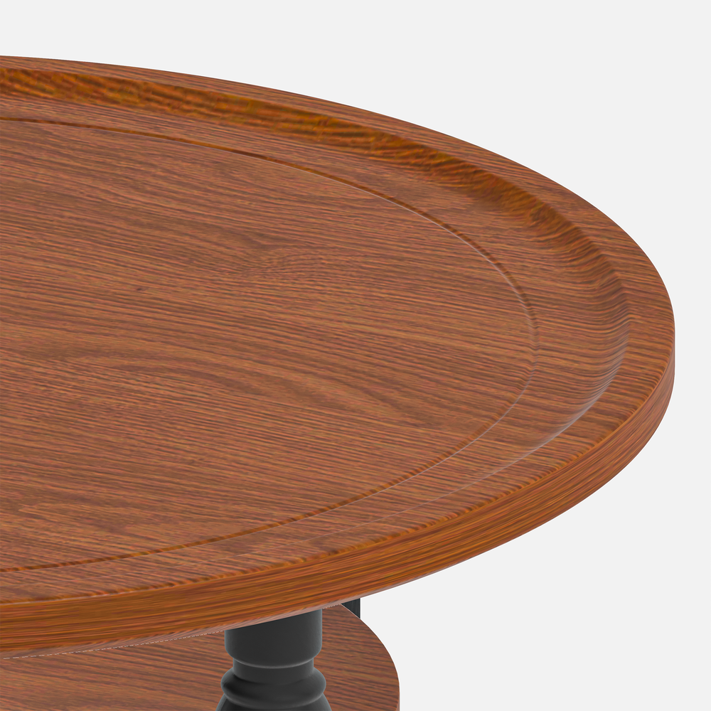 A walnut veneer top with softly curved edges highlights natural grain patterns while adding comfort and style.