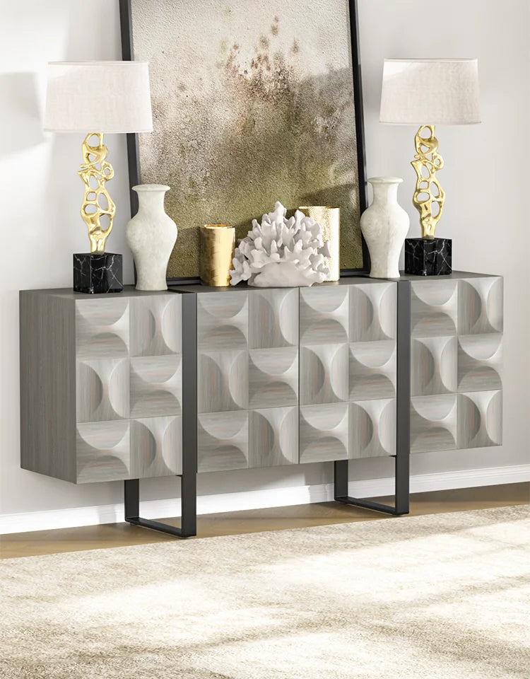 A sturdy stainless steel base provides lasting support and stability, adding a refined metallic accent to the overall design.