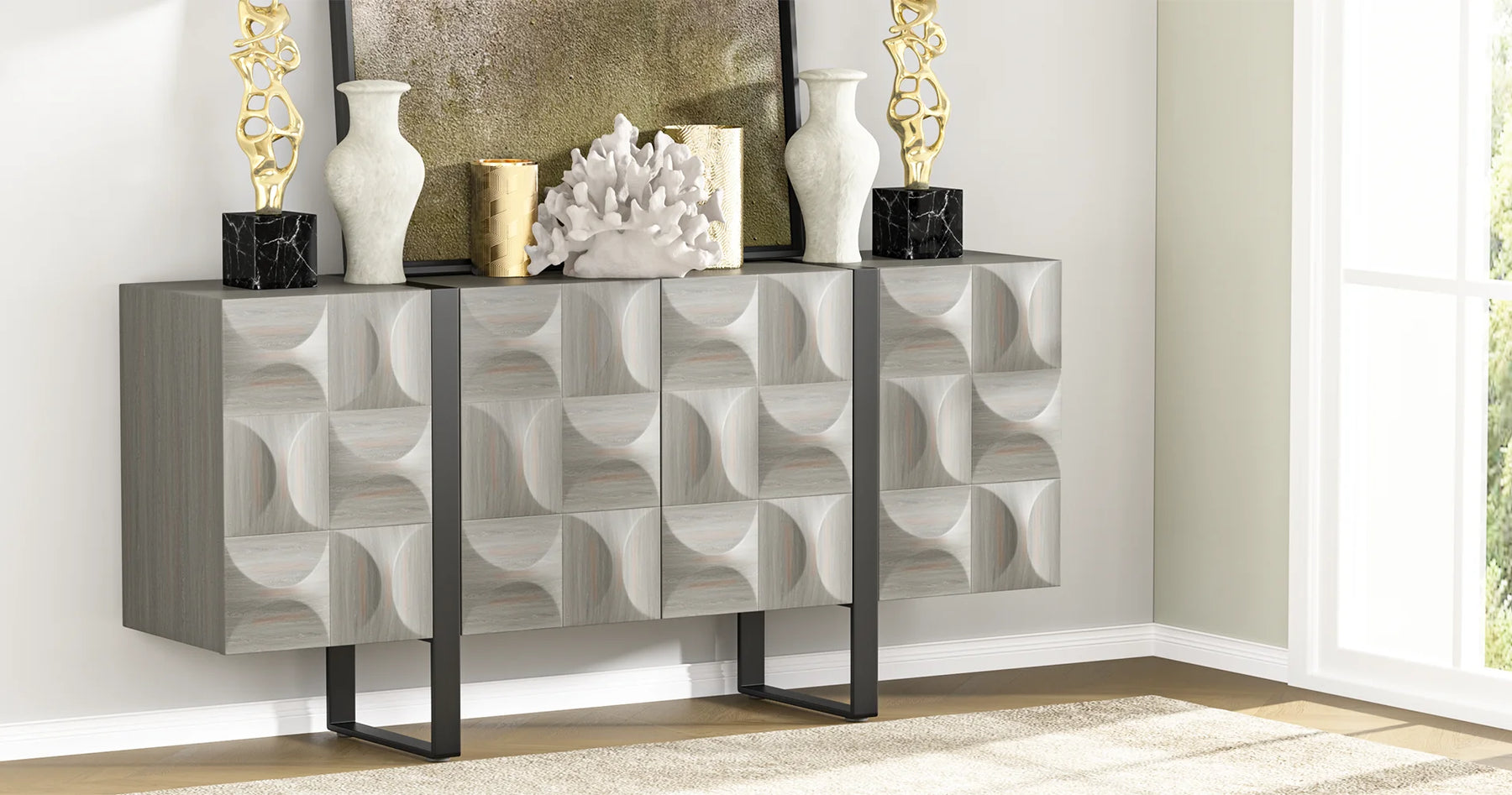 A sturdy stainless steel base provides lasting support and stability, adding a refined metallic accent to the overall design.