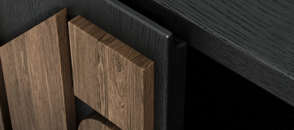 Intricate carved fronts bring vintage-inspired artistry, adding depth and character while keeping storage discreet.