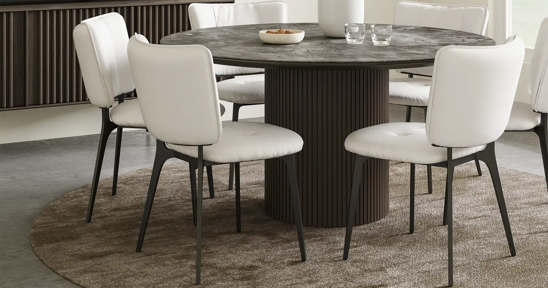 Smooth leather offers a refined look and can be easily wiped clean, making it perfect for dining and family living.