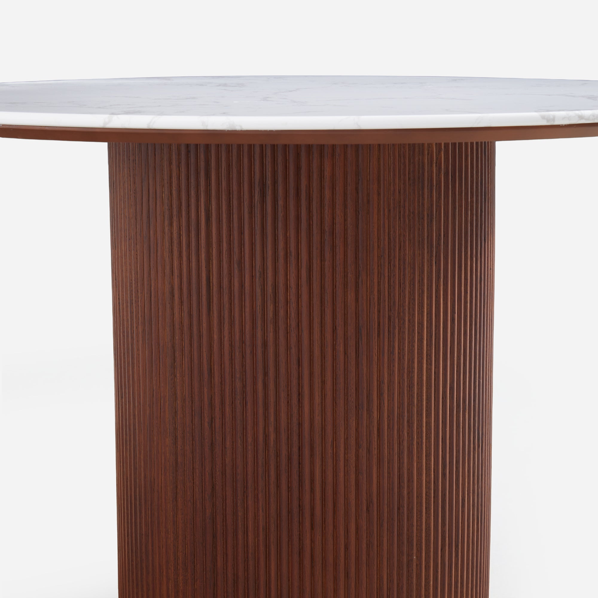 - Architectural fluted base crafted from solid oak strips, providing exceptional stability and modern texture.