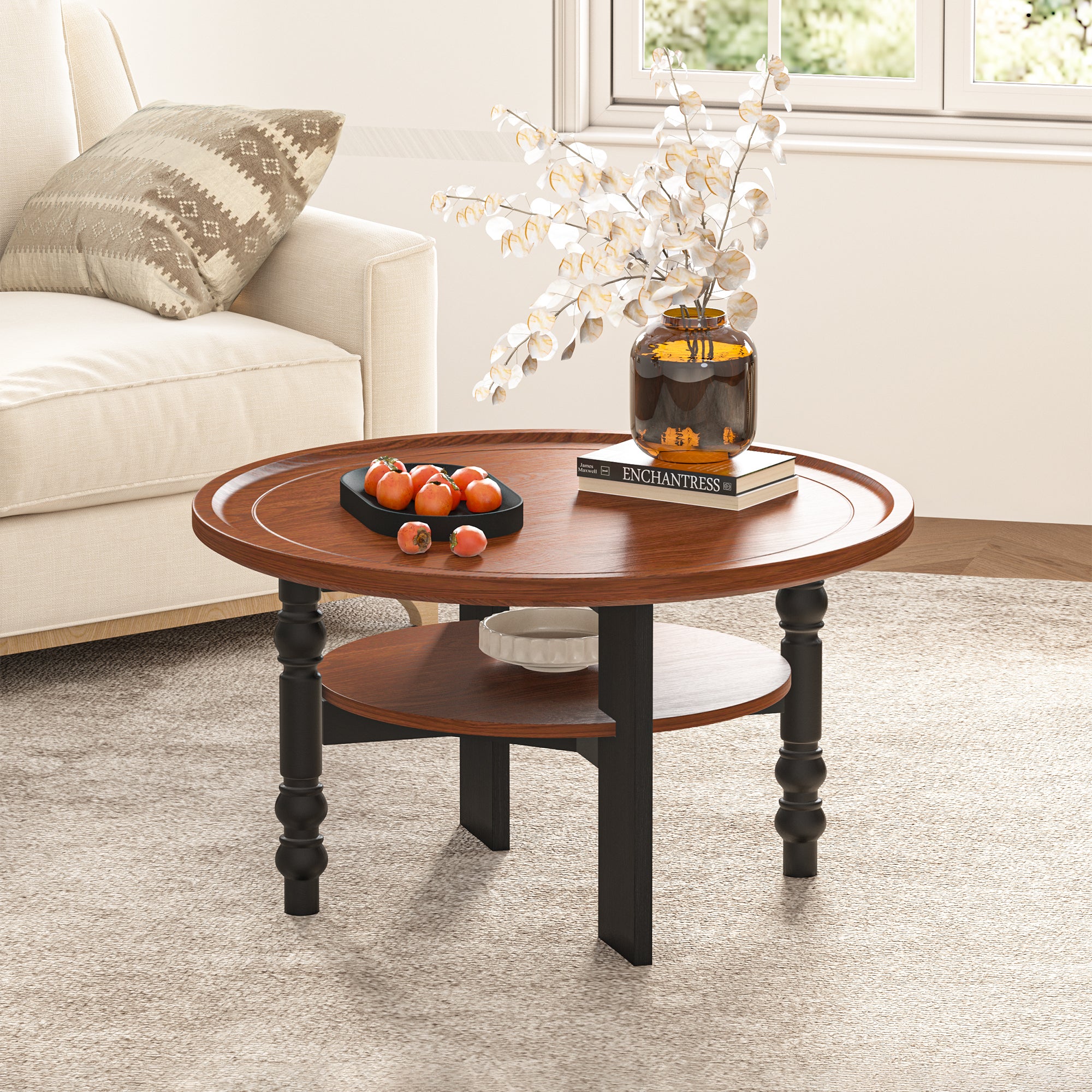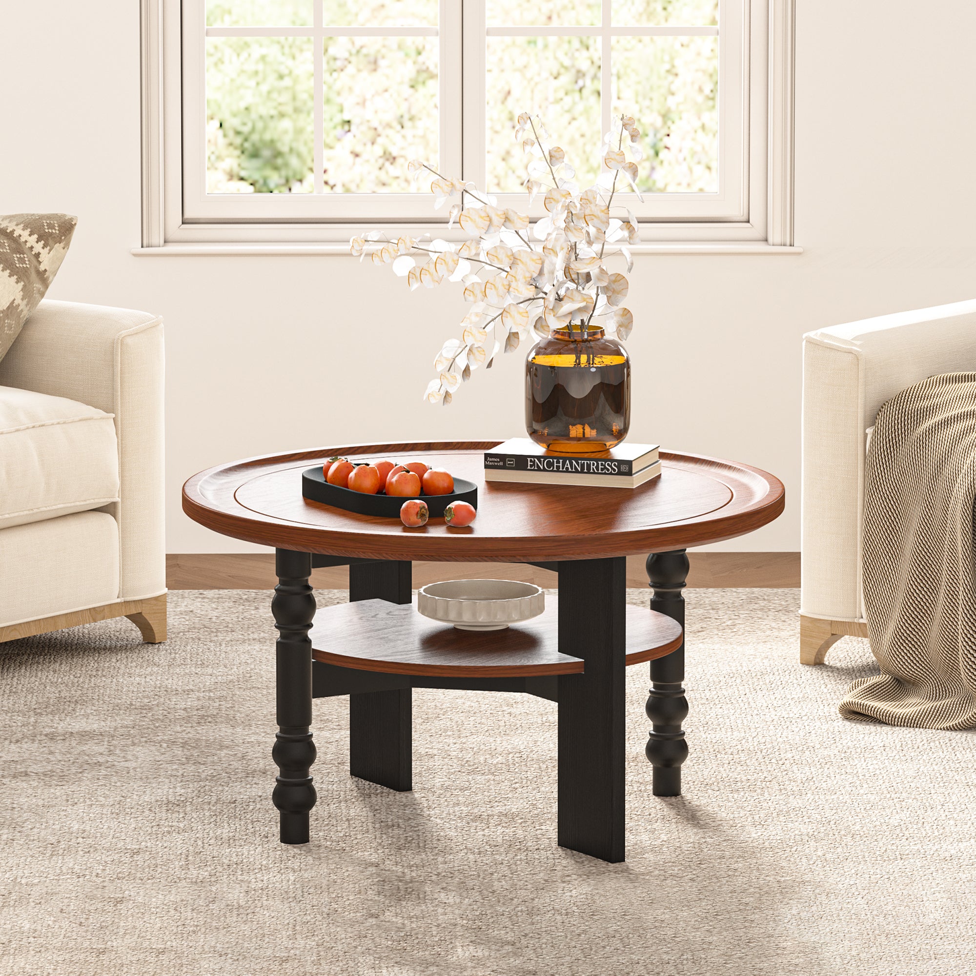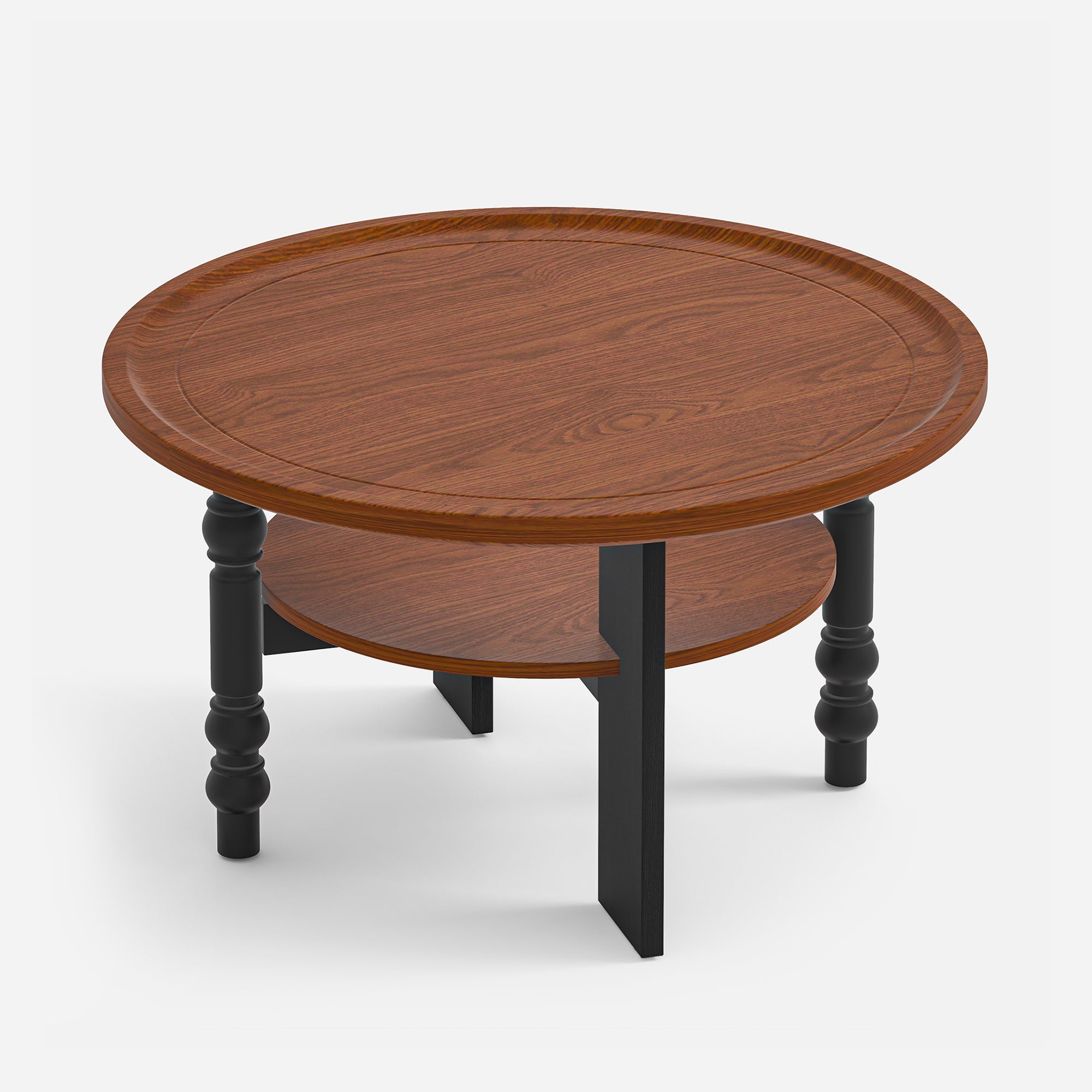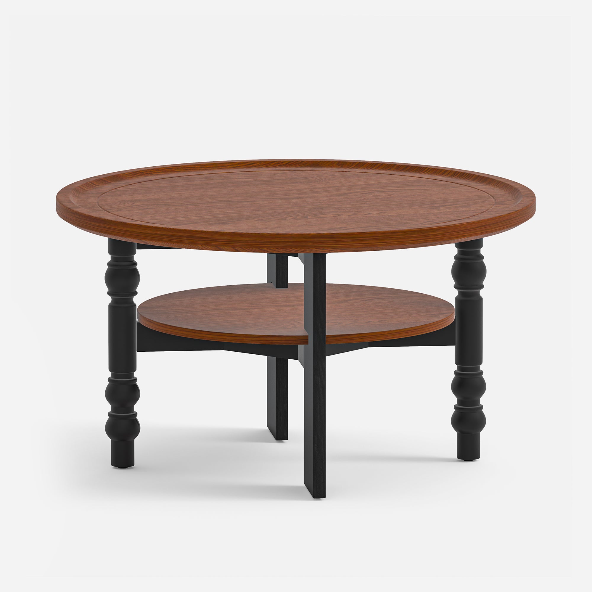 This two-tiered coffee table seamlessly blends modern elegance with everyday functionality. Its curved edges keep your essentials organized, while the lower shelf provides ideal storage. The matte brown top and black legs create a striking modern-retro look, bringing comfort and sophistication to any home.