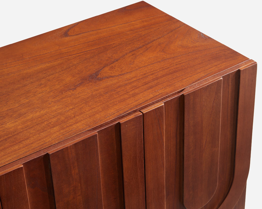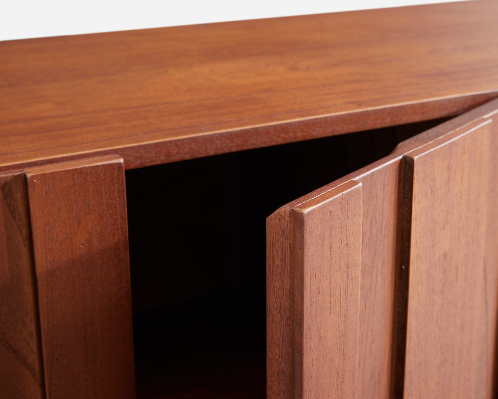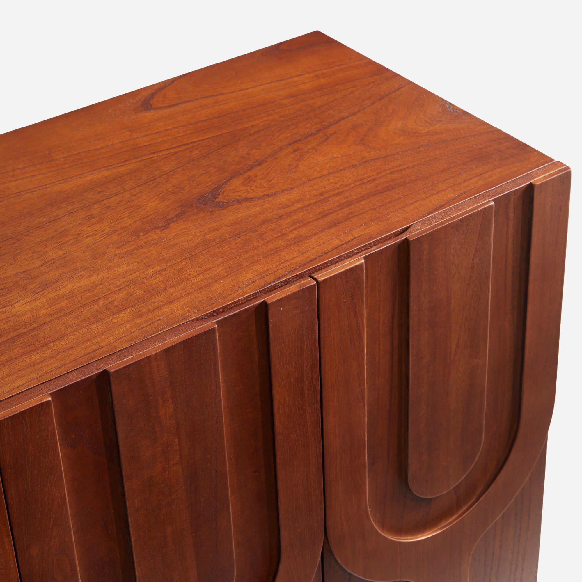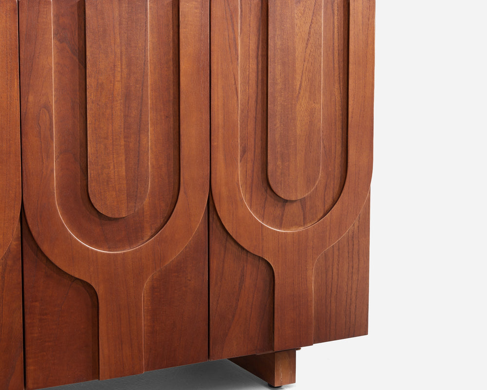 - The continuous, rhythmic curves of the carved doors offer a captivating Mid-century Modern aesthetic for your living area.