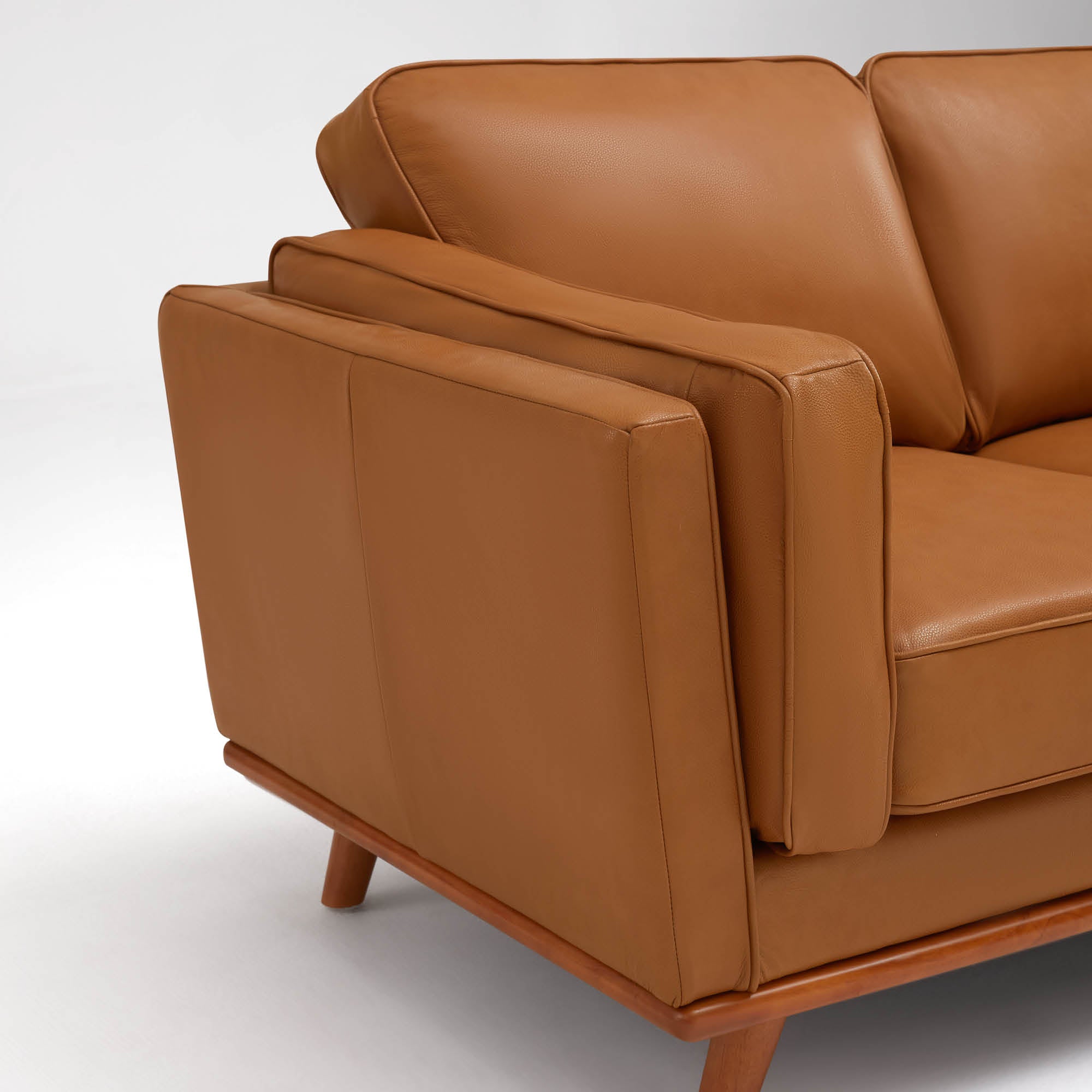 Inspired by Mid-Century Modernism, its clean lines and warm leather sculpt an artful silhouette in the window light. More than a sofa, it is a tangible classic—gracing every treasured moment.