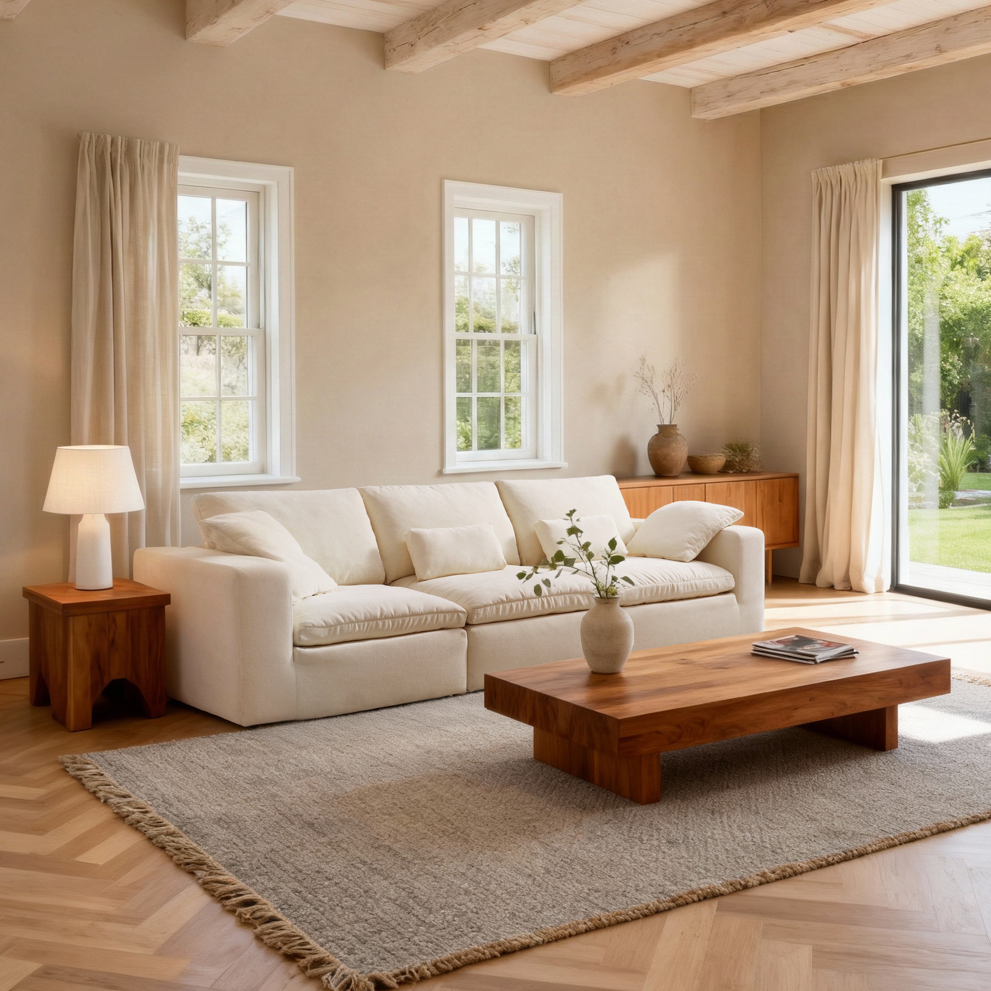 Clean lines and an expansive silhouette act as a sophisticated anchor for the room. This timeless design effortlessly elevates the overall aesthetic while maintaining an airy, open feel.