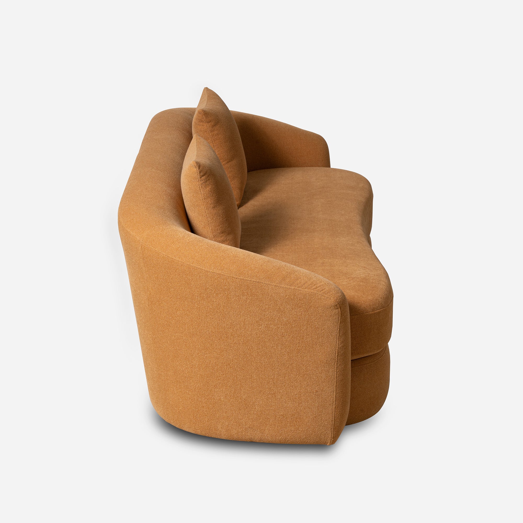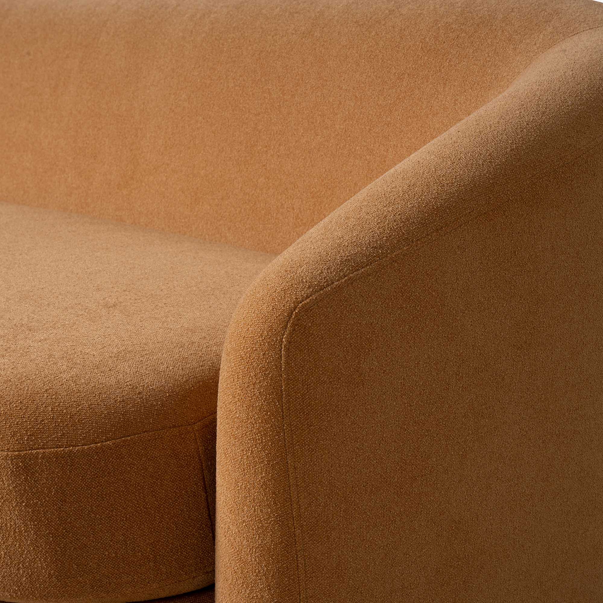 The Verona Sofa features a striking curved silhouette designed to provide a natural sense of enclosure and comfort. Tailored in premium, fine-textured chenille over a reinforced hardwood frame, its arched backrest and rounded armrests create a cozy, protective retreat.
