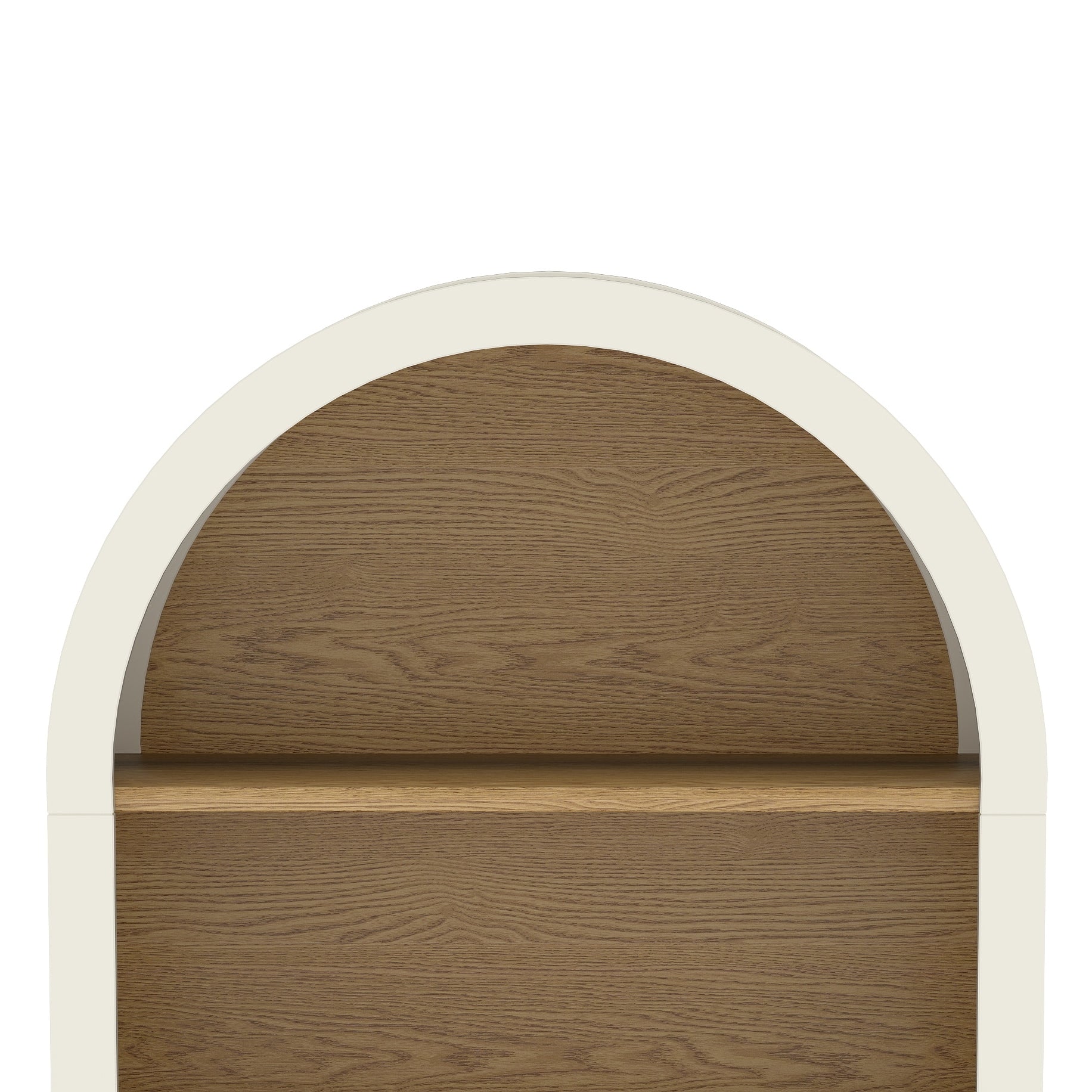 This modern arched bookshelf features a clean white frame with woodgrain shelves for a timeless look. The 3-tier design offers ample storage and display space for books, décor, and essentials, making it a versatile piece for the living room, bedroom, or entryway.