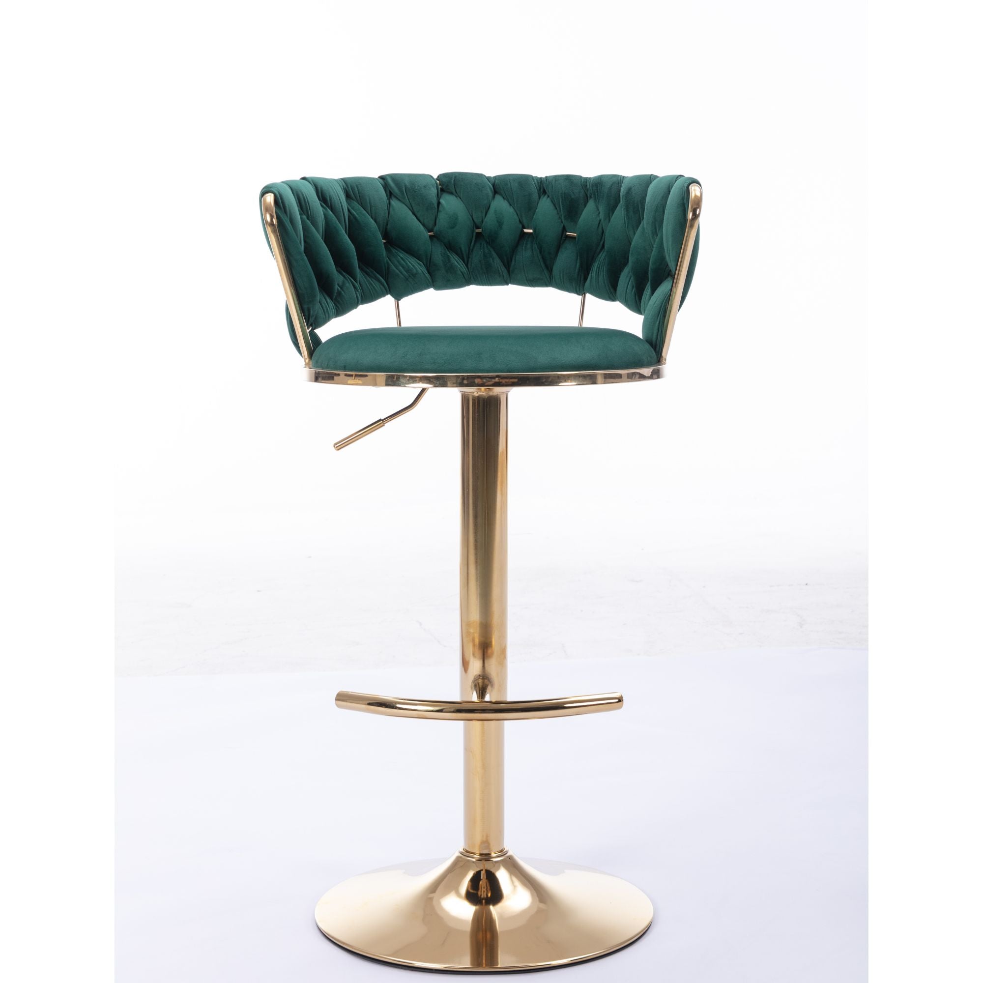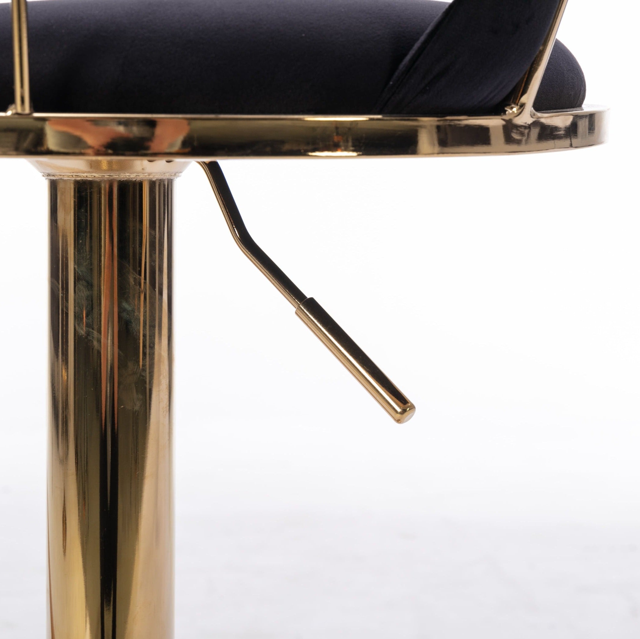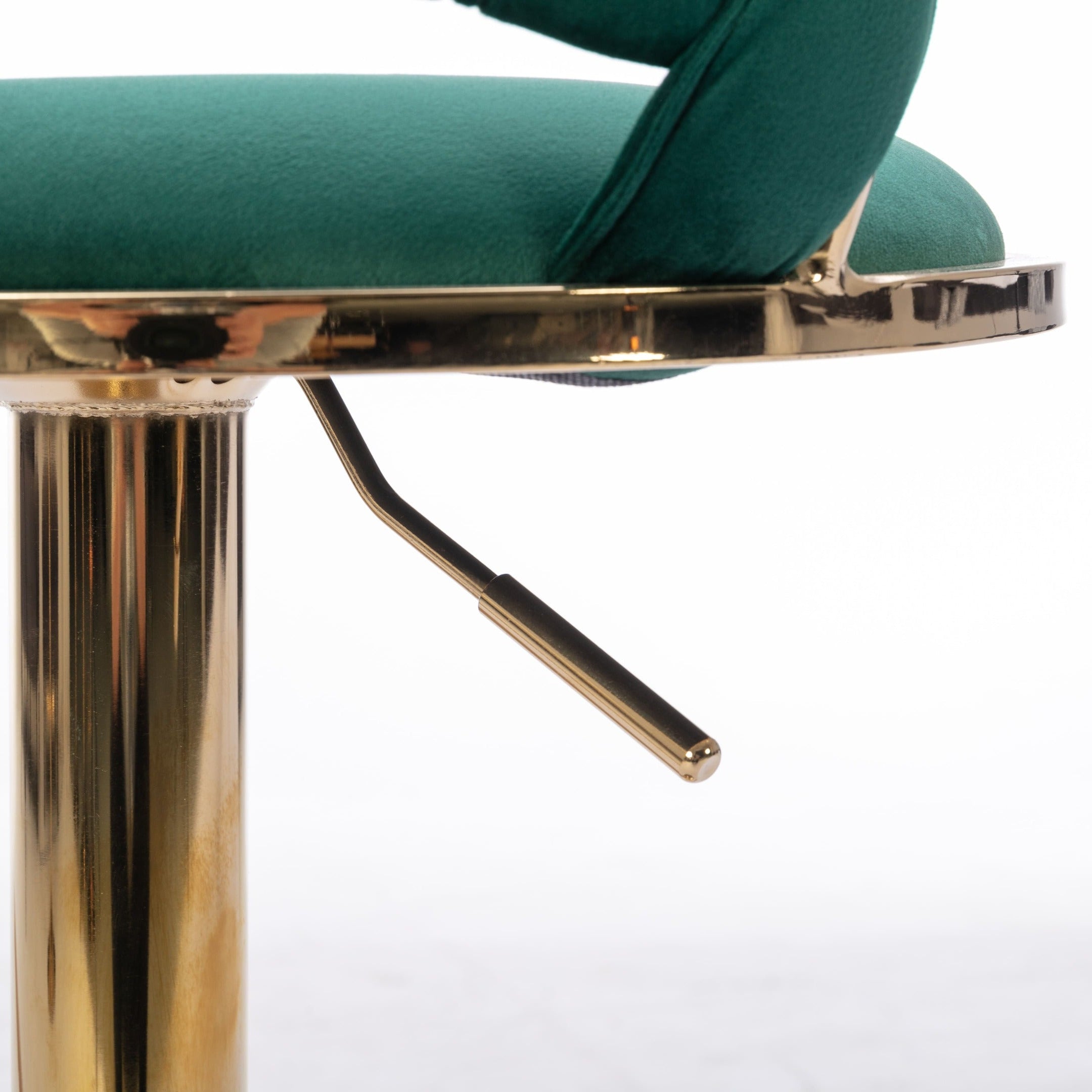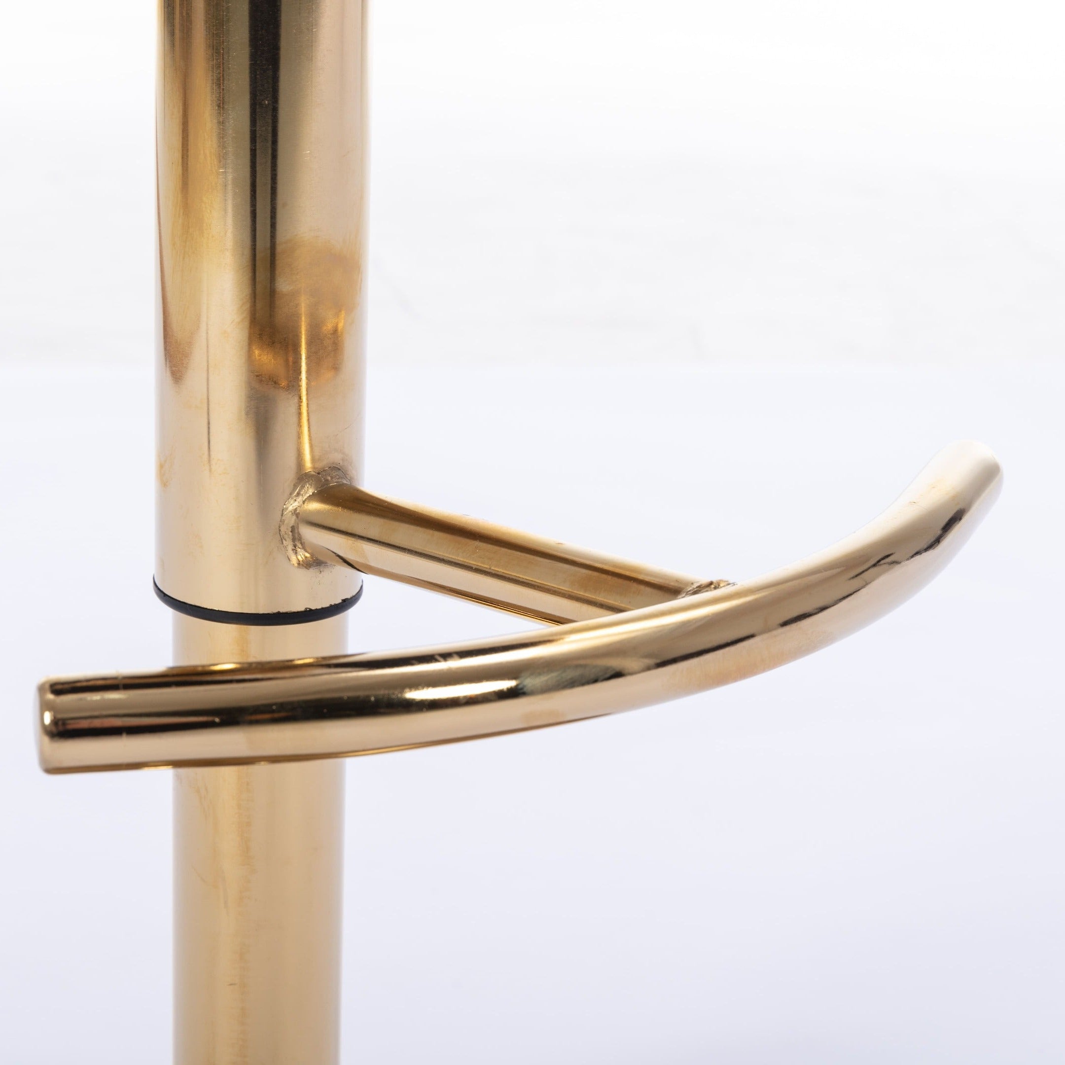 This set of 2 modern bar stools combines plush velvet seating with sleek golden legs and a chrome footrest. Featuring a swivel seat and adjustable lift, they bring comfort and versatility to kitchens, home bars, or dining spaces with contemporary flair.