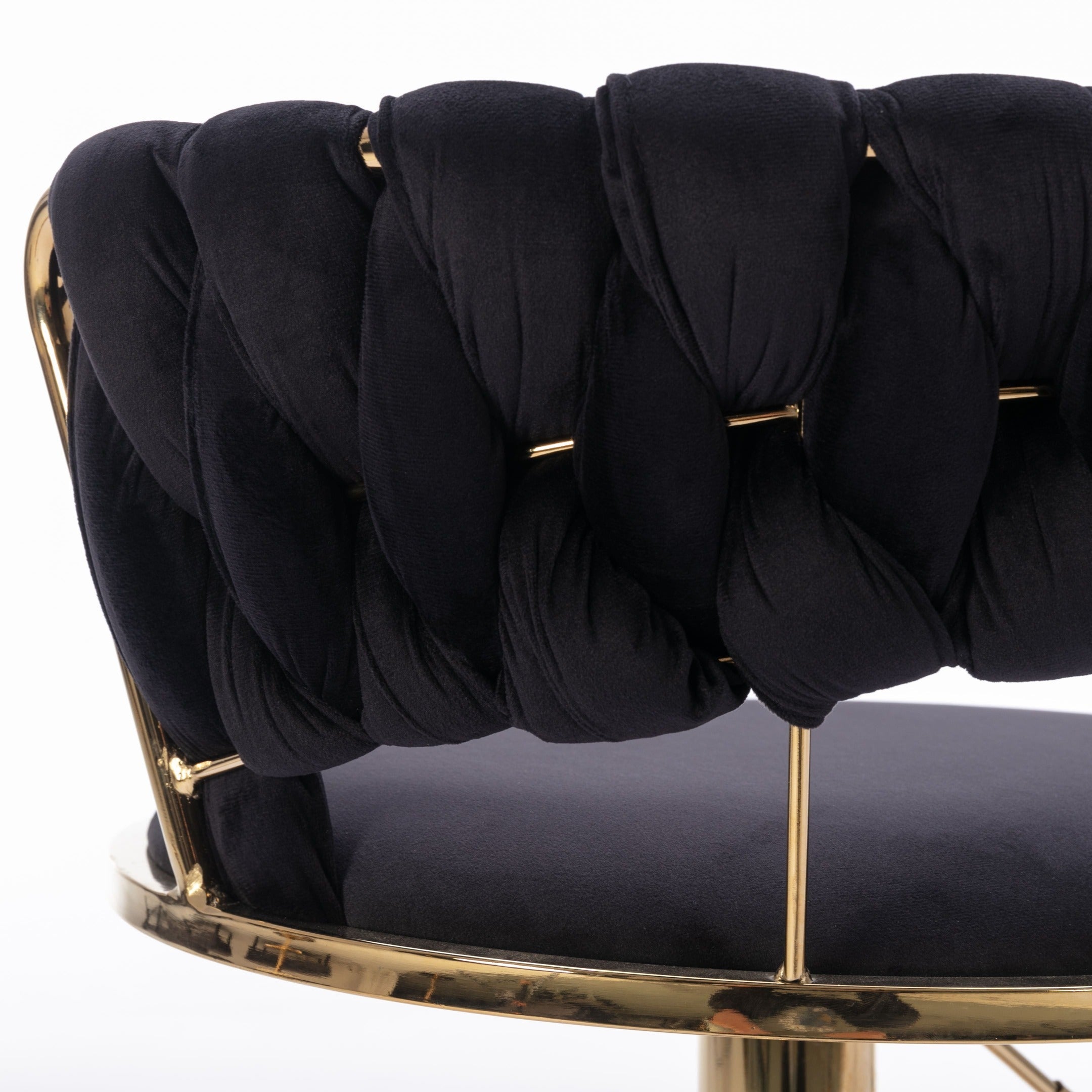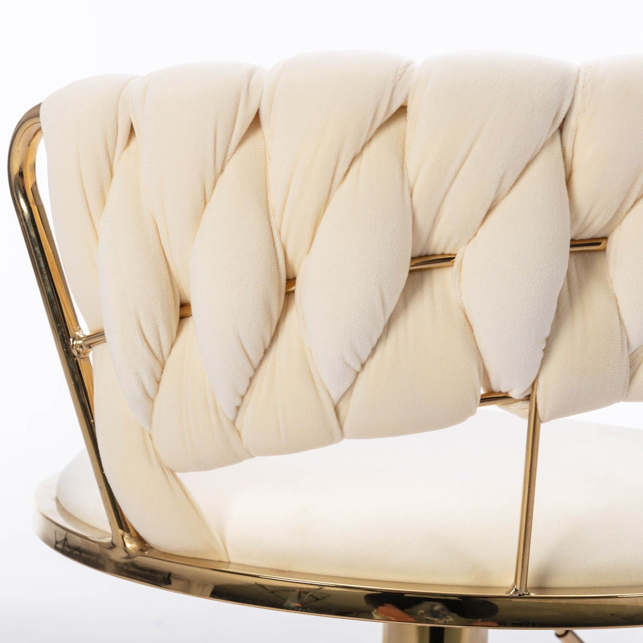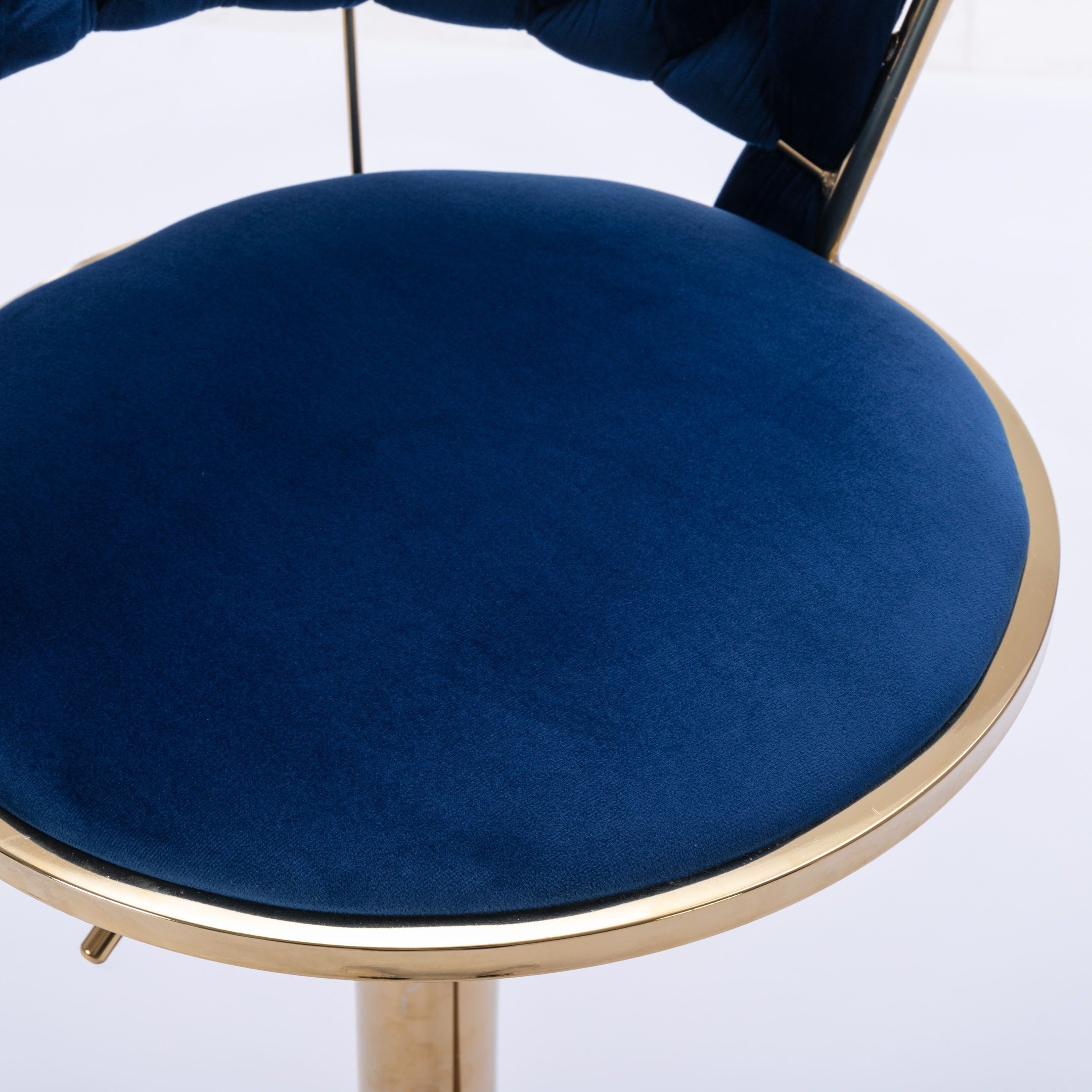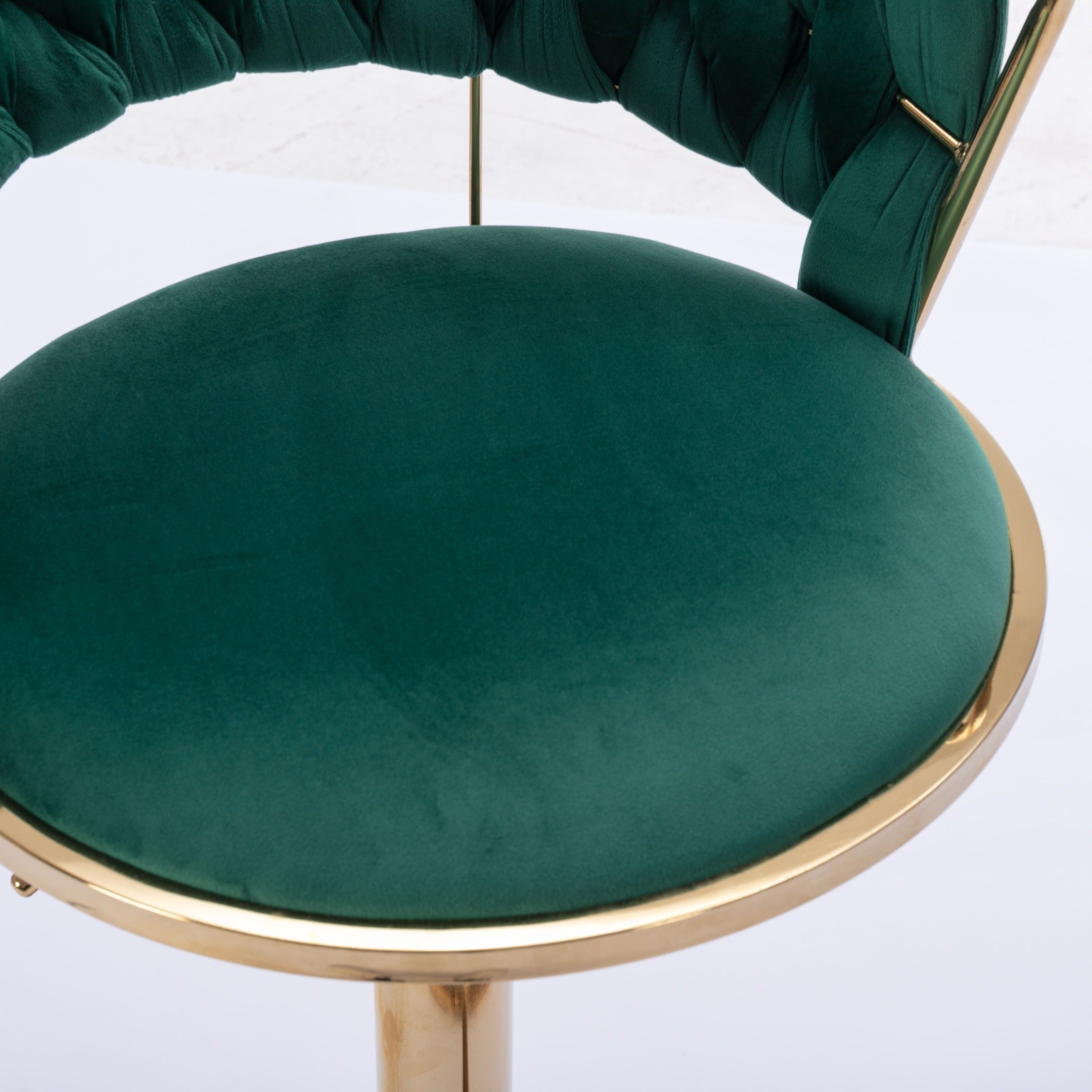 This set of 2 modern bar stools combines plush velvet seating with sleek golden legs and a chrome footrest. Featuring a swivel seat and adjustable lift, they bring comfort and versatility to kitchens, home bars, or dining spaces with contemporary flair.