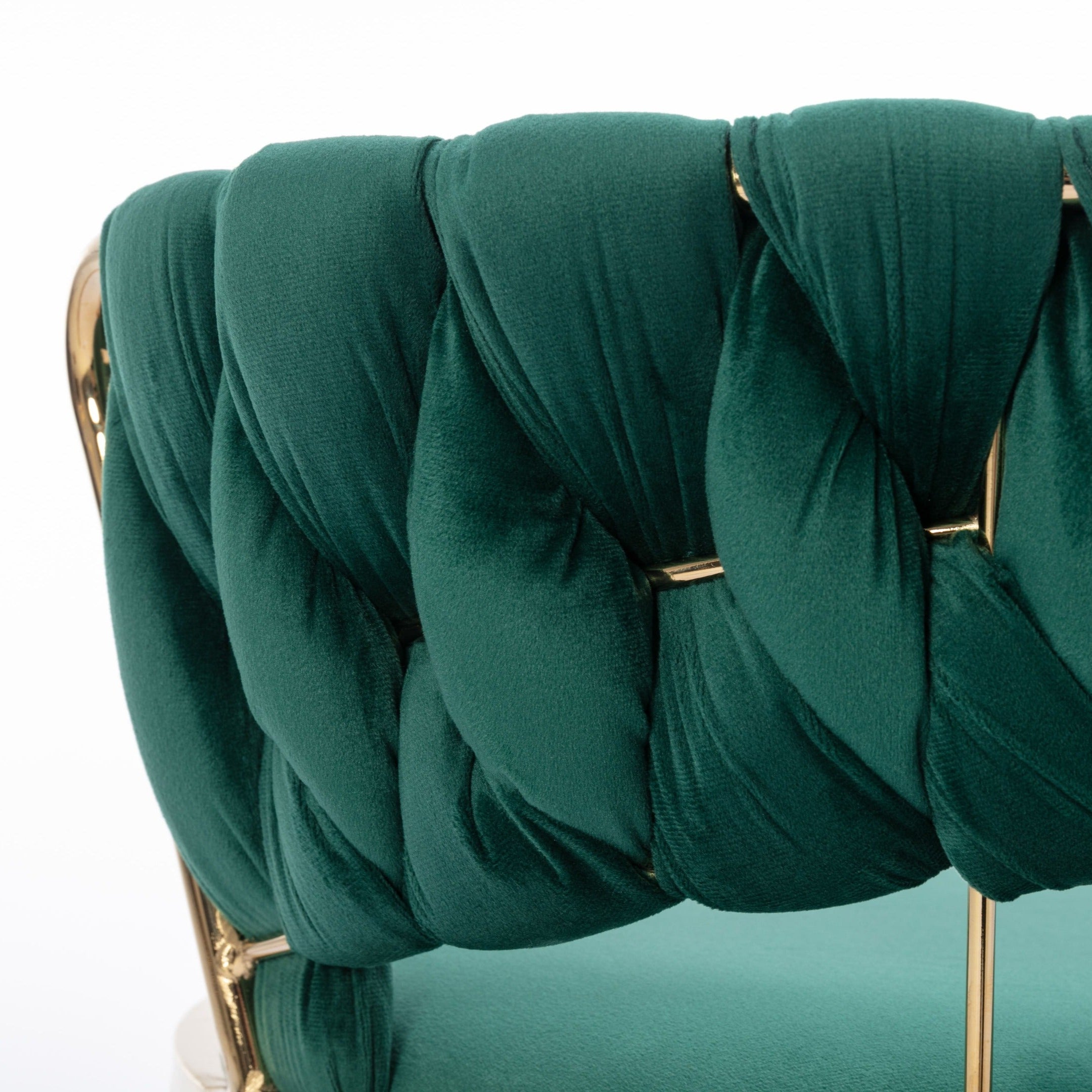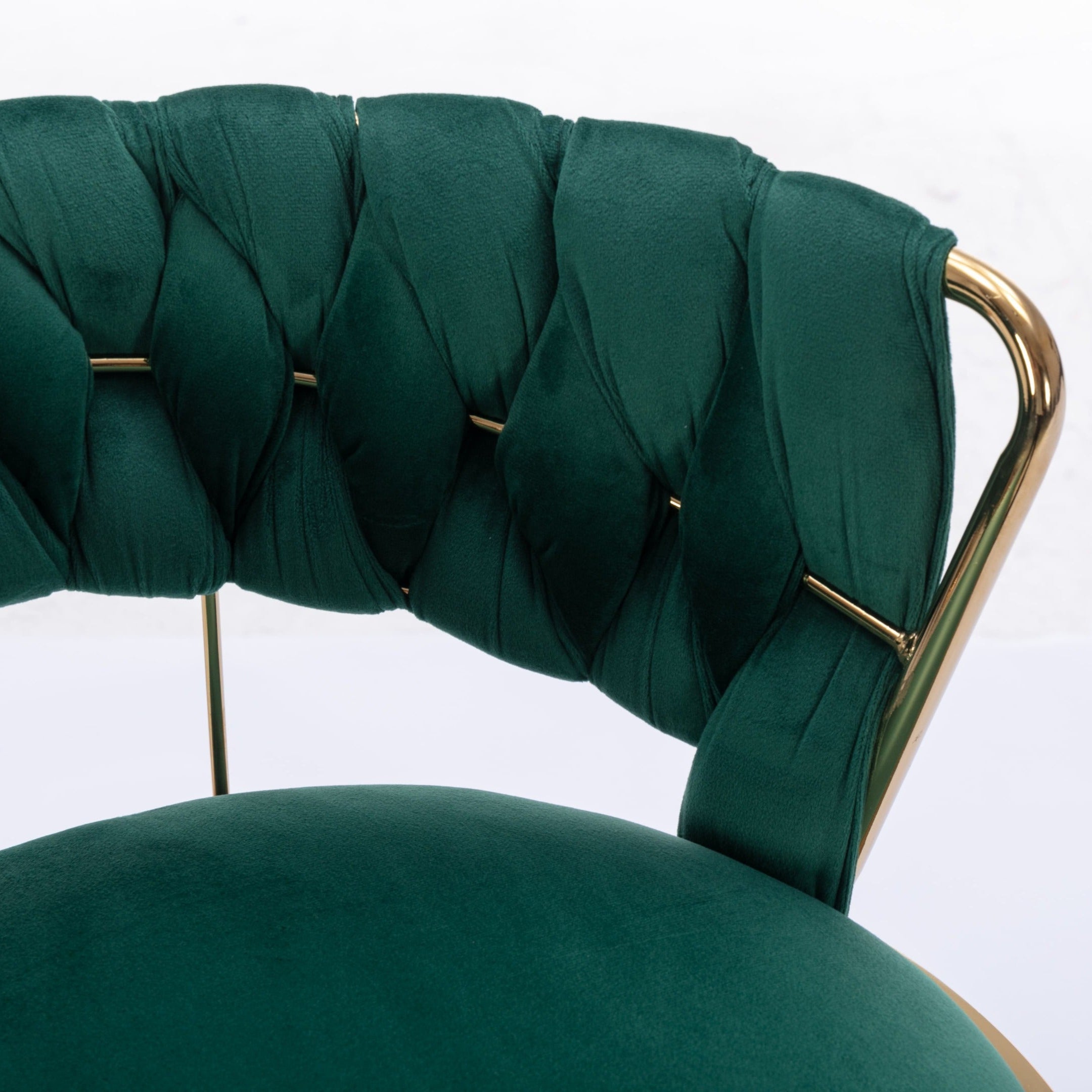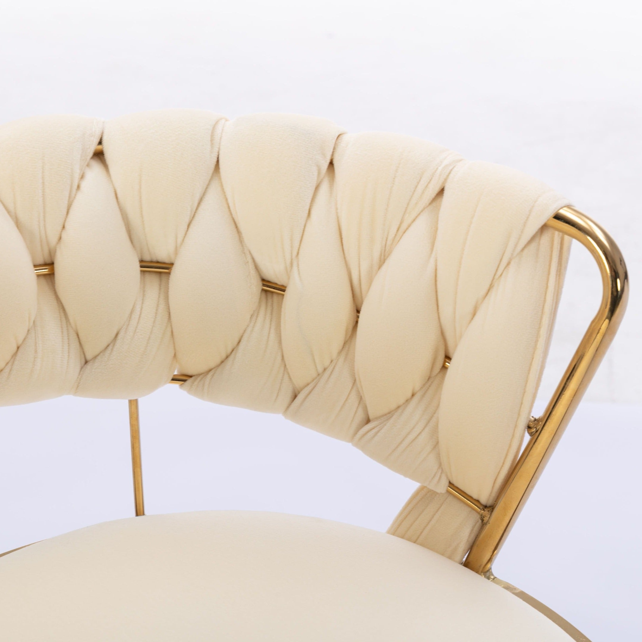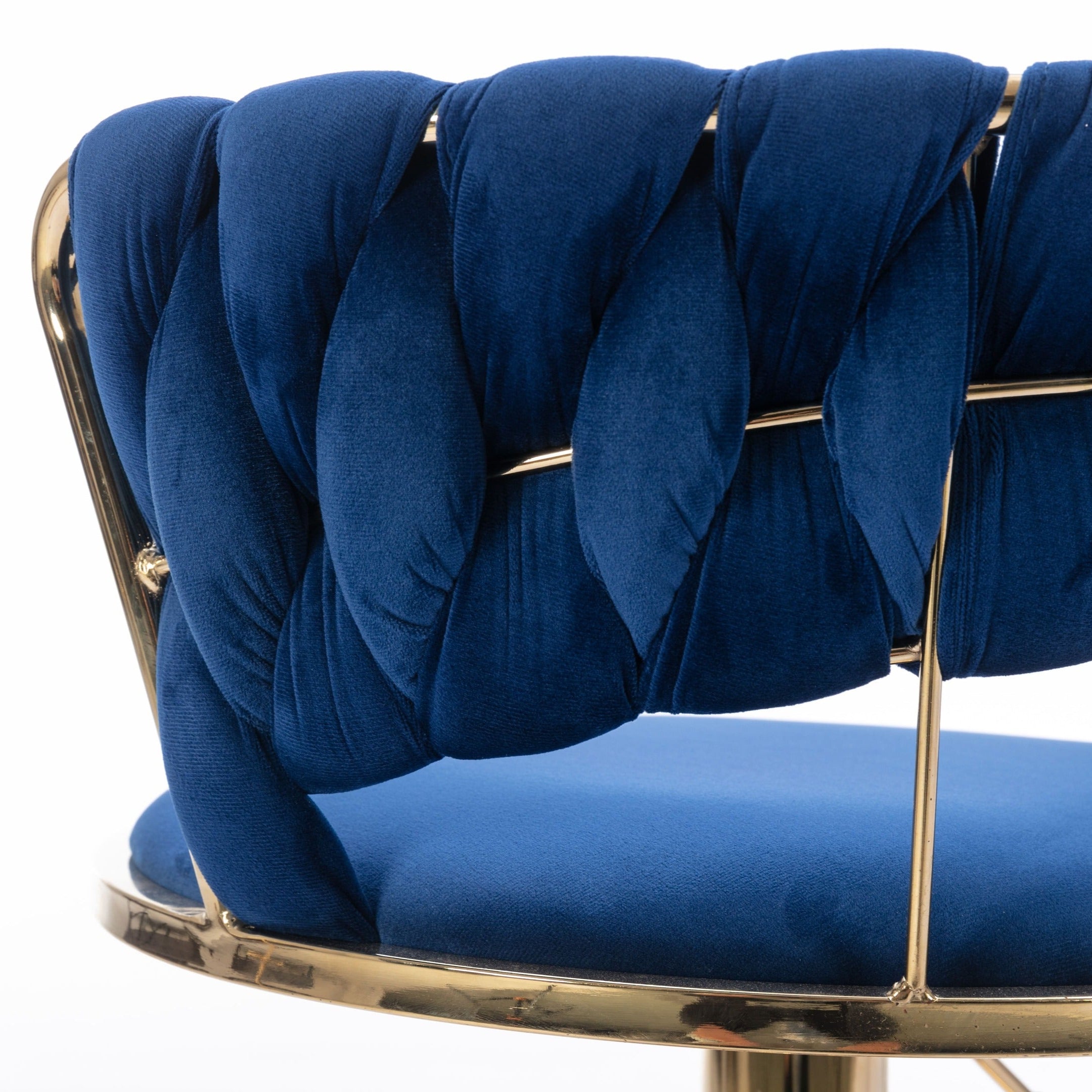 This set of 2 modern bar stools combines plush velvet seating with sleek golden legs and a chrome footrest. Featuring a swivel seat and adjustable lift, they bring comfort and versatility to kitchens, home bars, or dining spaces with contemporary flair.
