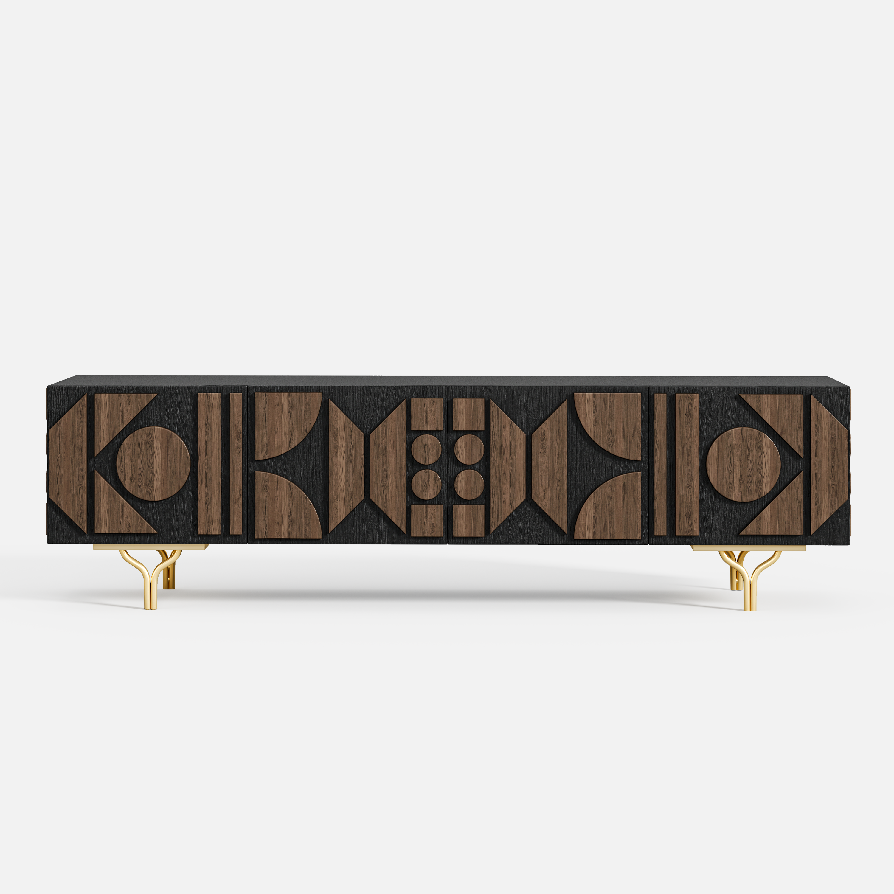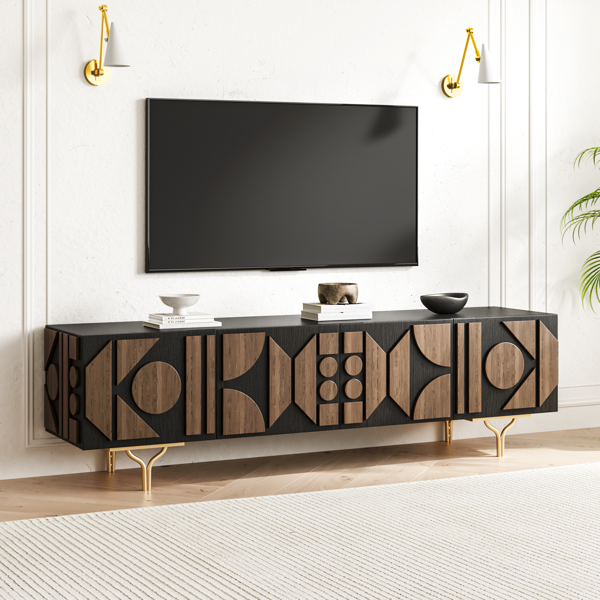 Vintage charm meets modern utility in this thoughtfully crafted TV stand. With bold carved patterns and sculptural Y-shaped legs, this TV stand balances artistic detail with everyday strength, and is designed to elevate your home while keeping essentials tucked away.