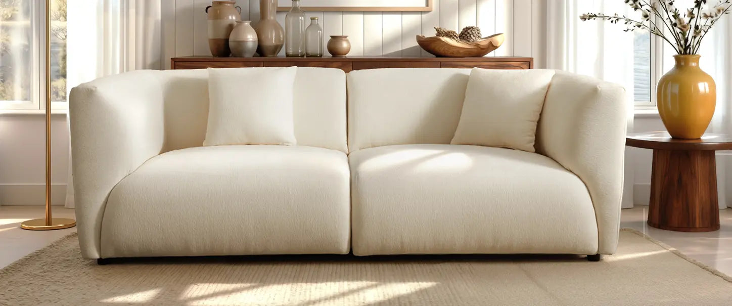 The Celia Sofa features a low-profile, modular silhouette tailored in premium chenille over a solid pine wood frame. Its cloud-like cushioning and expansive proportions invite you to unwind, transforming your living room into a sanctuary of modern serenity and effortless style.