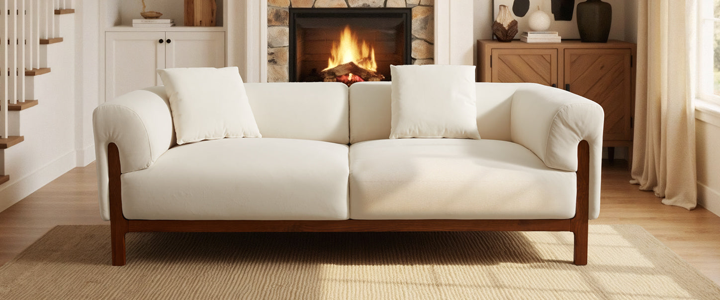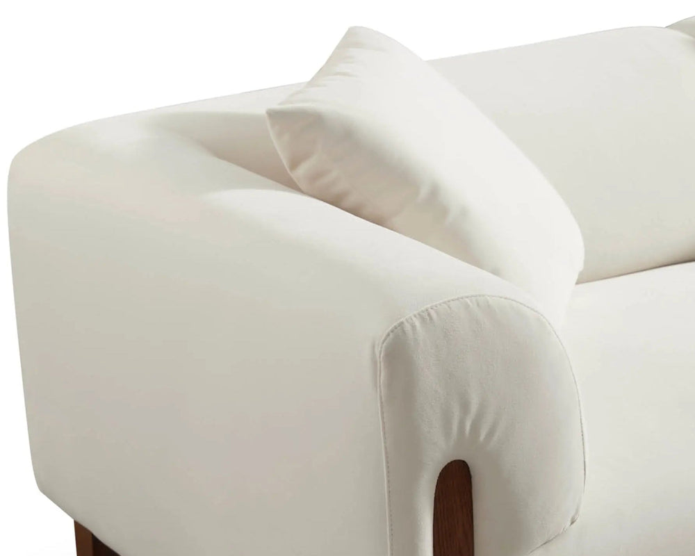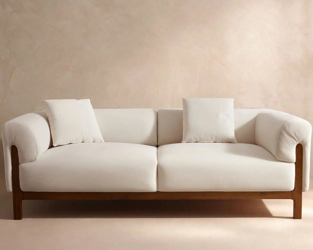 The low-slung silhouette maintains visual openness, while the arched back and armrests provide precise support. Together, they enclose a serene zone that feels, from the moment you settle in, like sinking into a soft cloud.