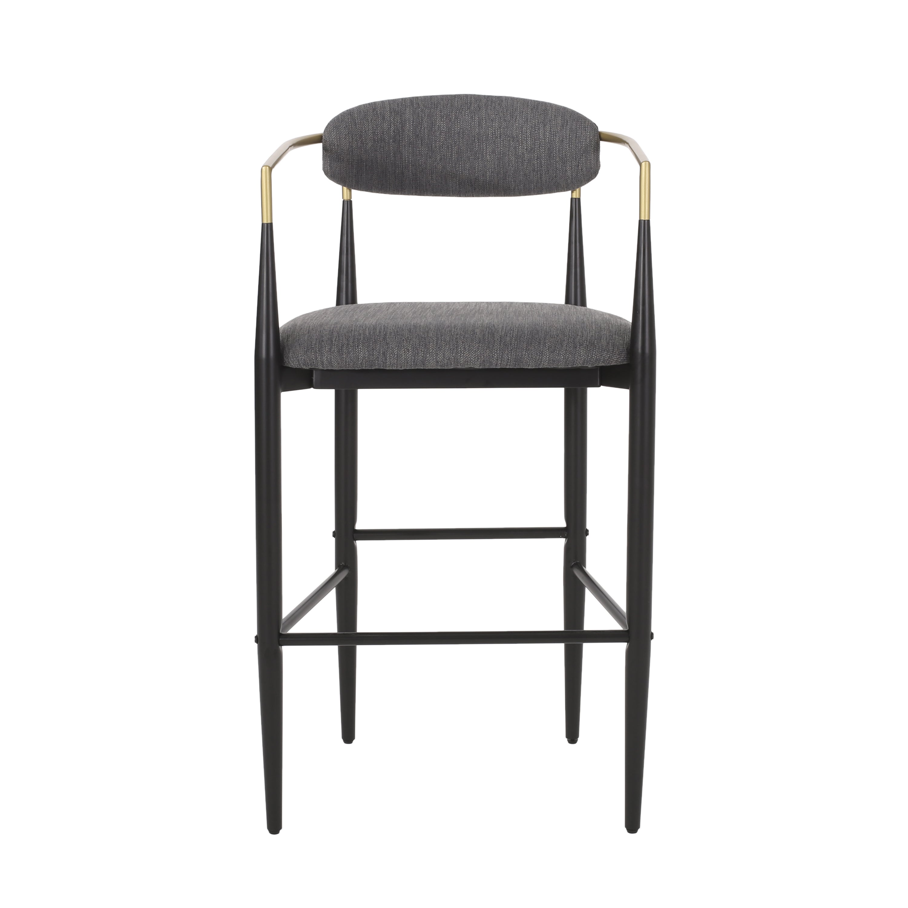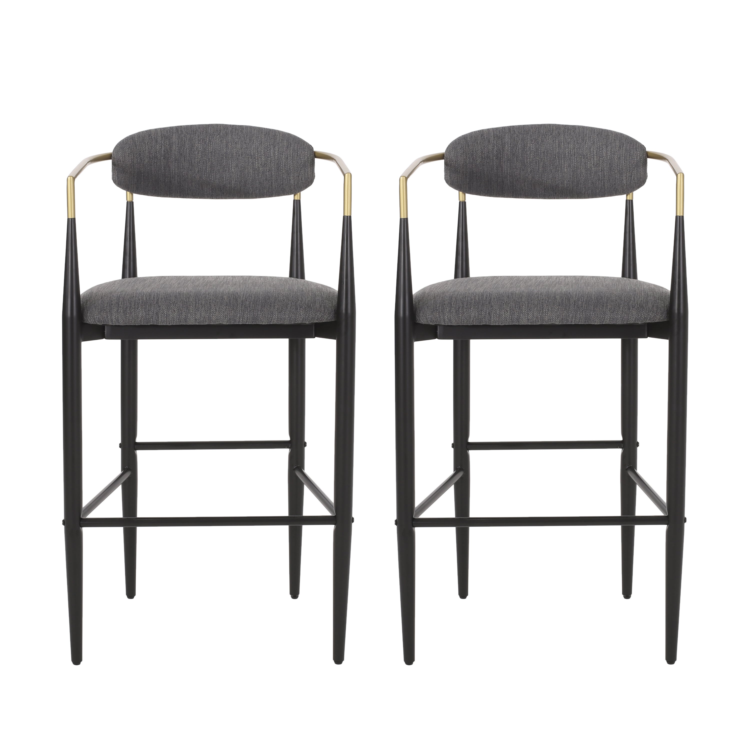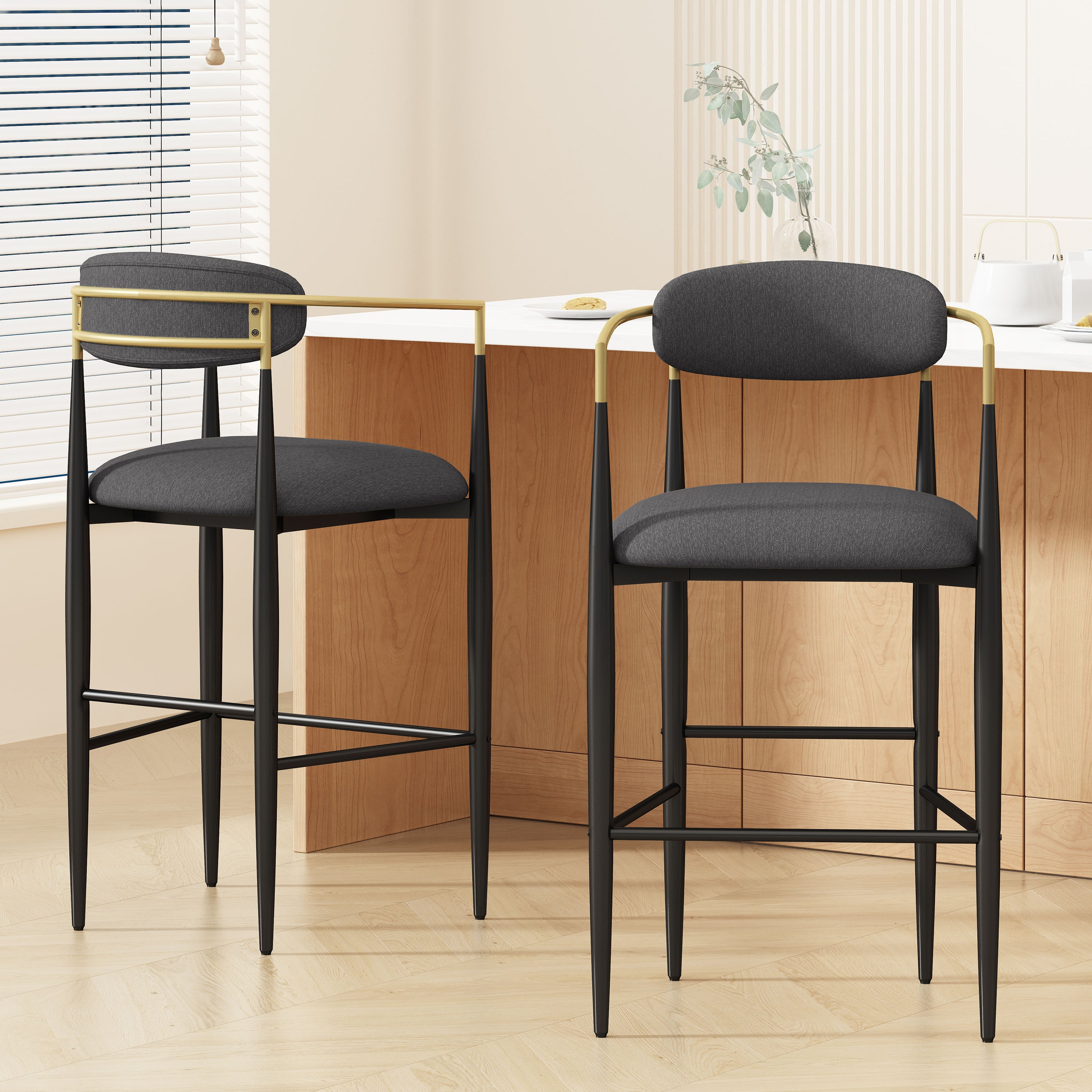 Elevate your home bar with this set of 2 modern barstools. Featuring smooth upholstery, curved open backrests, and sleek black iron frames with gold accents, they combine chic design with sturdy comfort for stylish everyday seating.