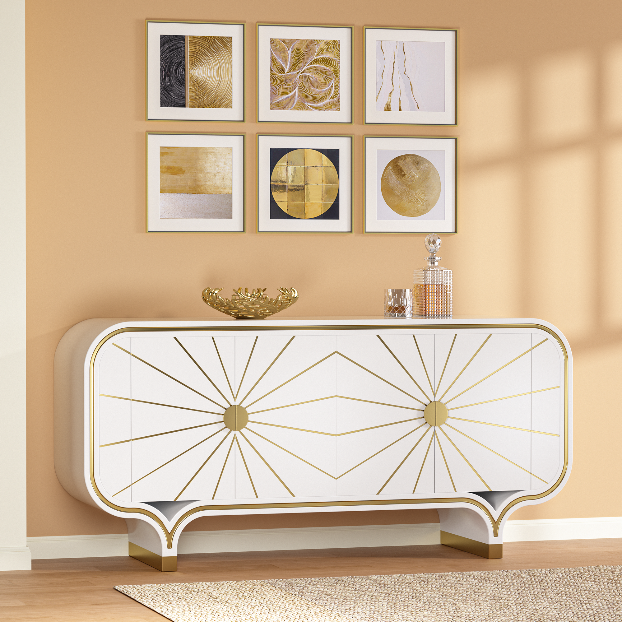 From storing tableware in the dining room to organizing essentials in the hallway or showcasing decorative items in the living room, this modern sideboard is the perfect addition to any home. Soft-close doors and adjustable shelves offer both convenience and flexibility.