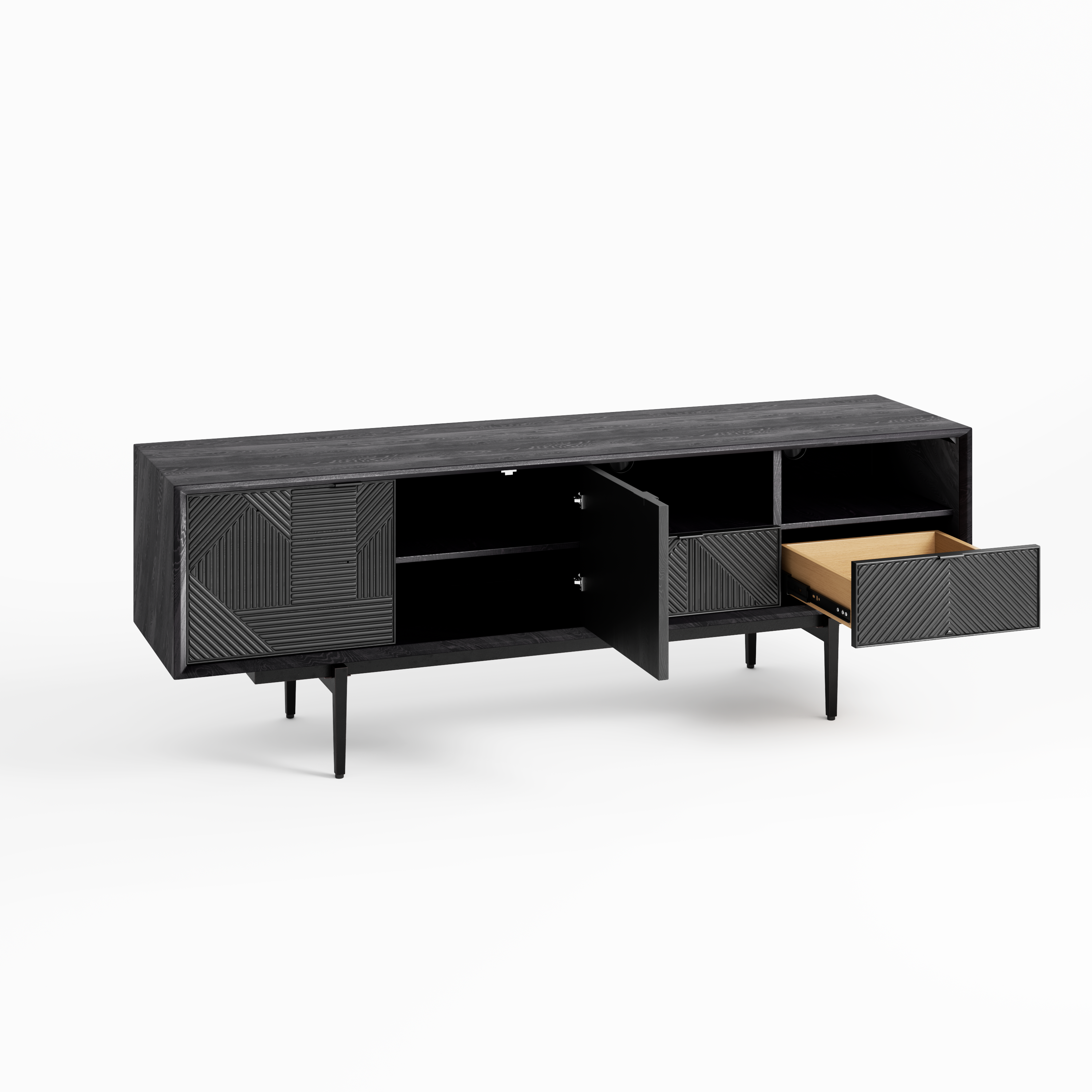 Blending clean lines with practical design, this modern TV stand prioritizes convenience without compromising style. Whether showcasing decorative items or organizing media devices, it offers a stylish, clutter-free solution that fits seamlessly into your living space.