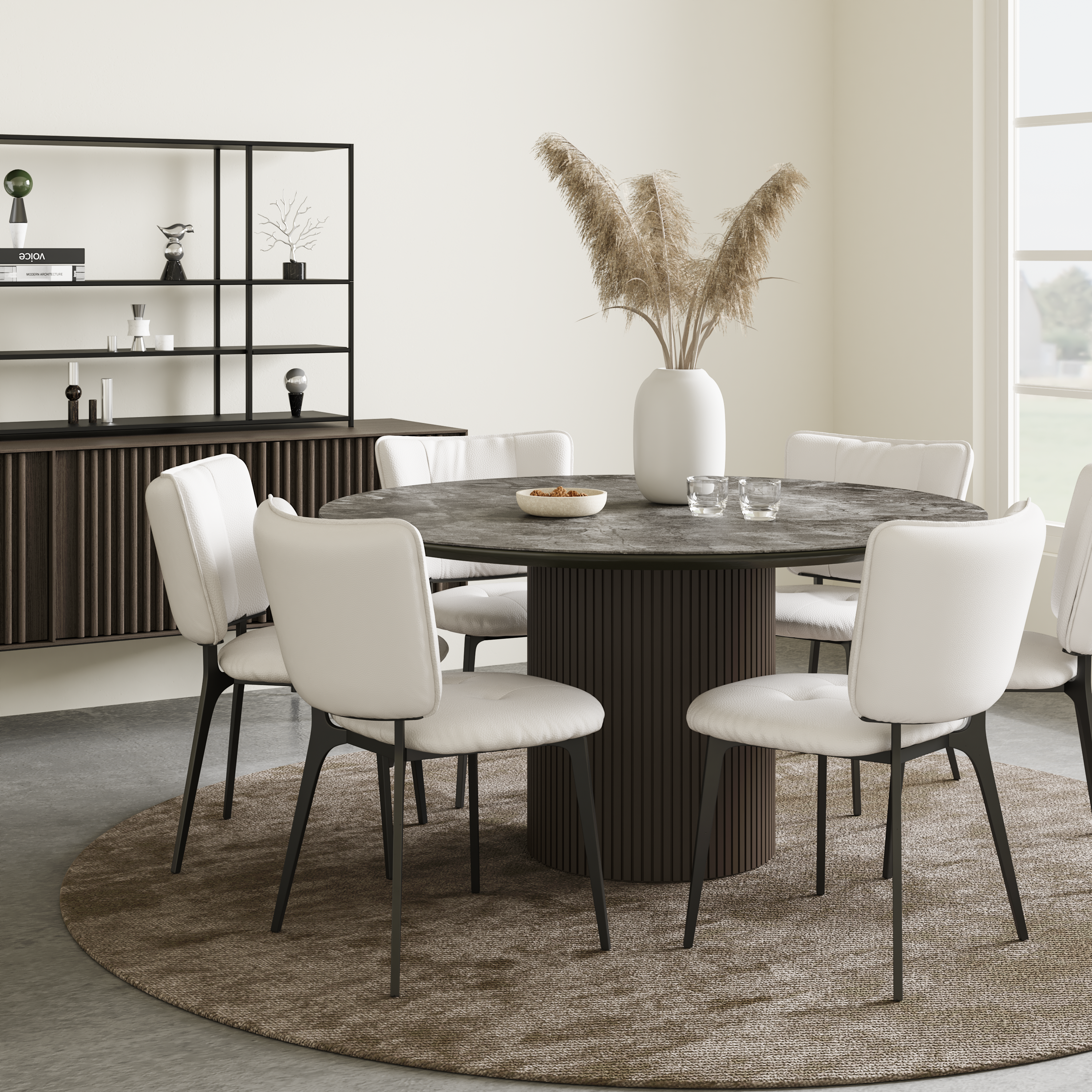 Transform your dining room into a sophisticated gathering space with these elegantly designed upholstered dining chairs. These chairs seamlessly blend contemporary style with exceptional comfort, making every meal a luxurious experience.