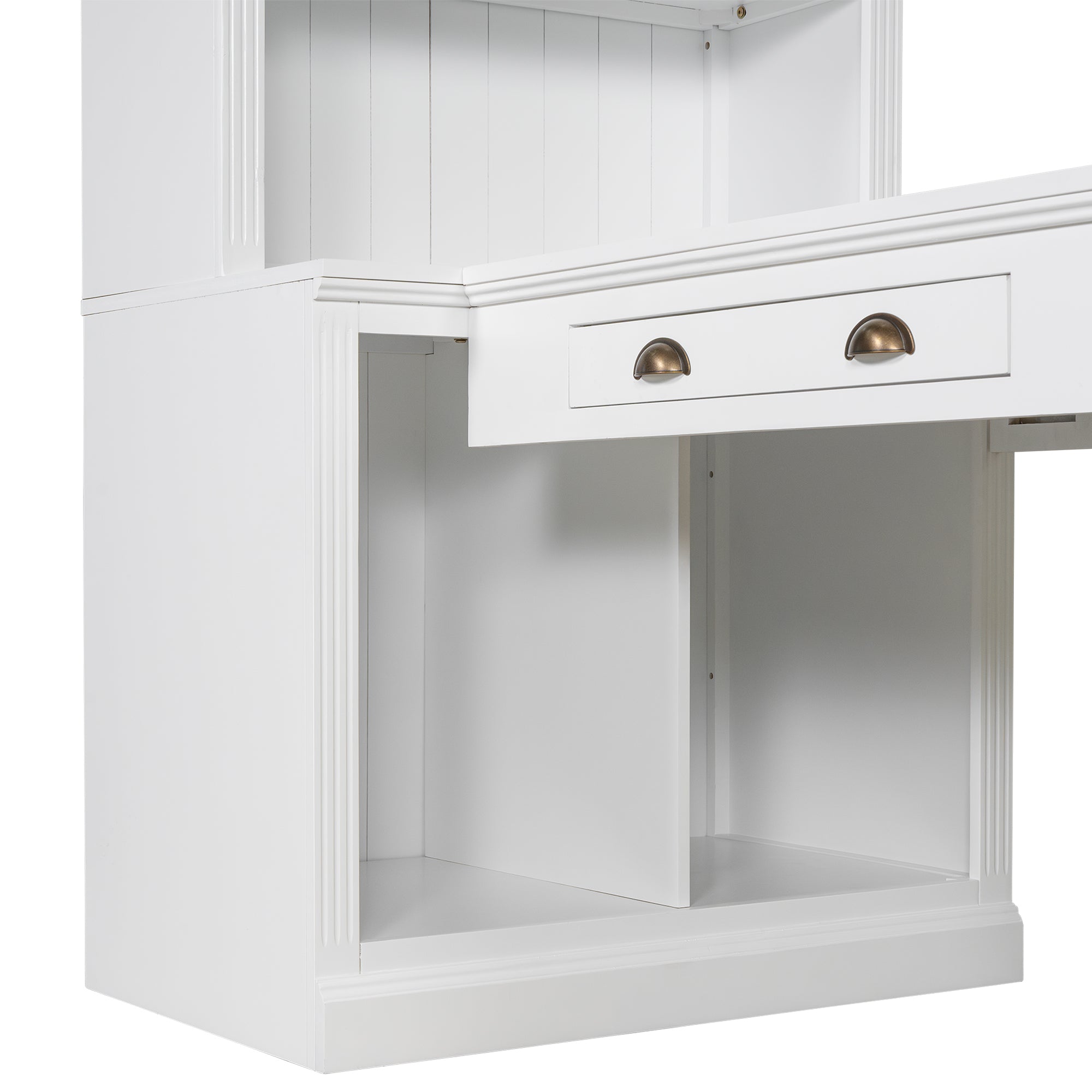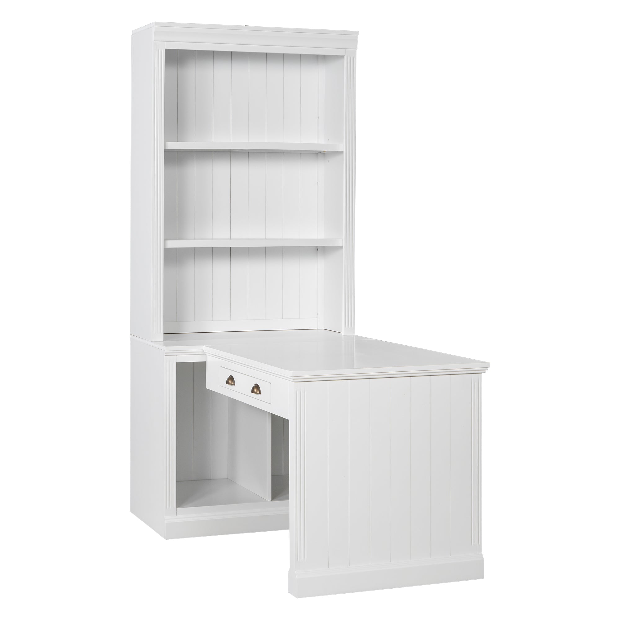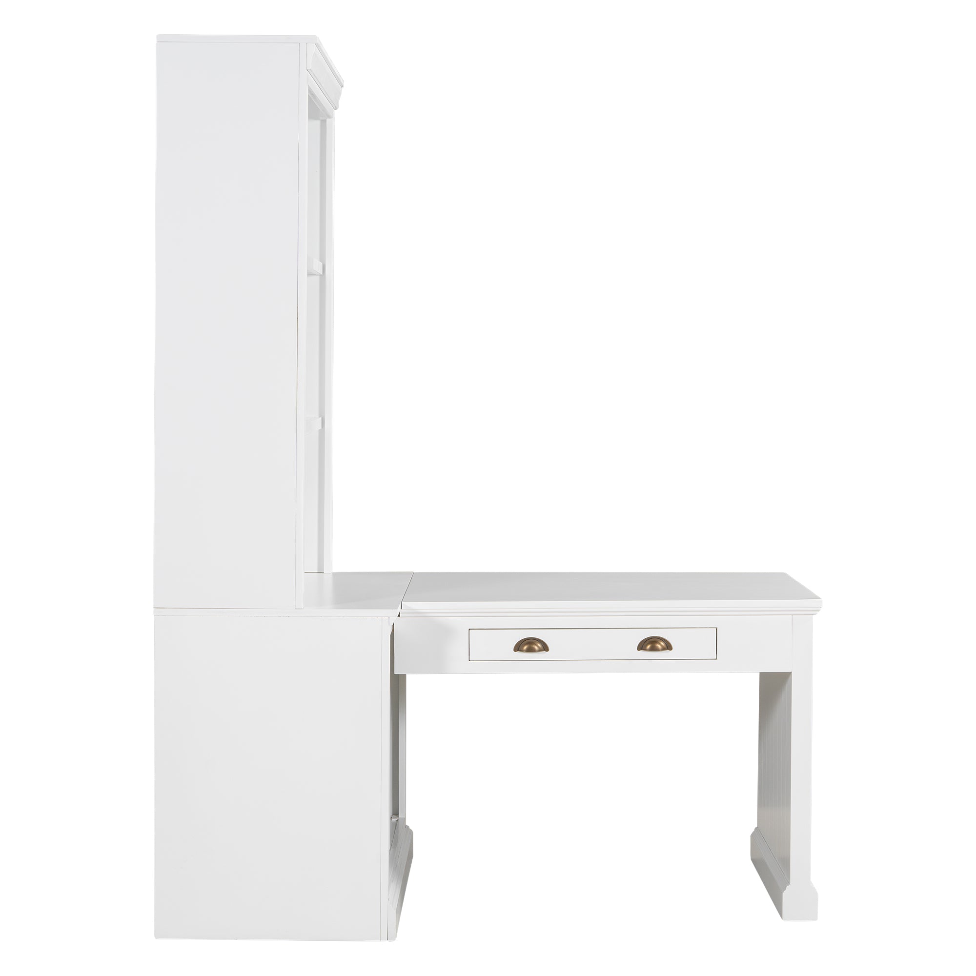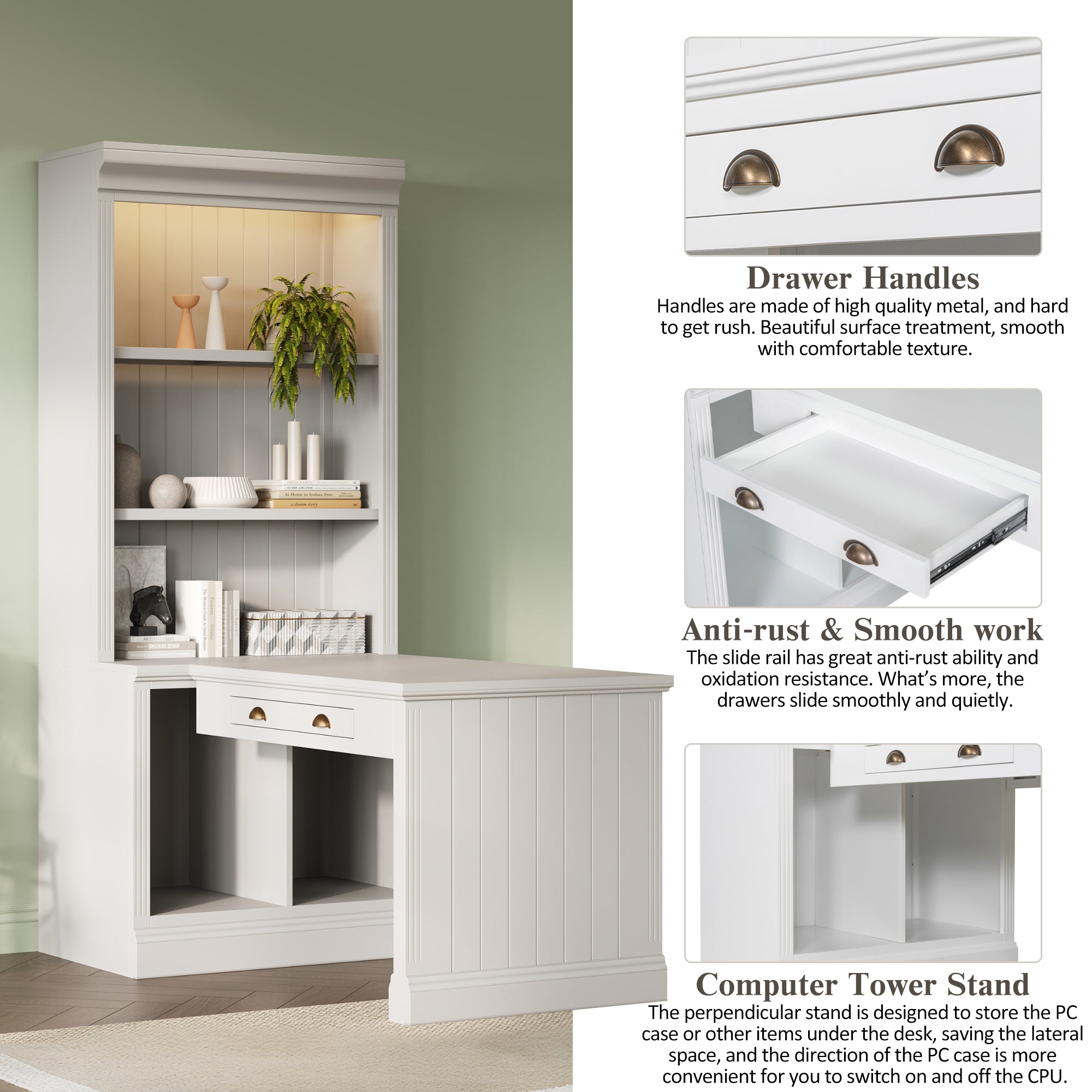 This solid wood study desk with bookcase features 3 open shelves, 2 vertical storage spaces, and a smooth, rust-resistant drawer. Sturdy MDF and anti-tip design ensure durability and safety for a stylish, functional workspace.