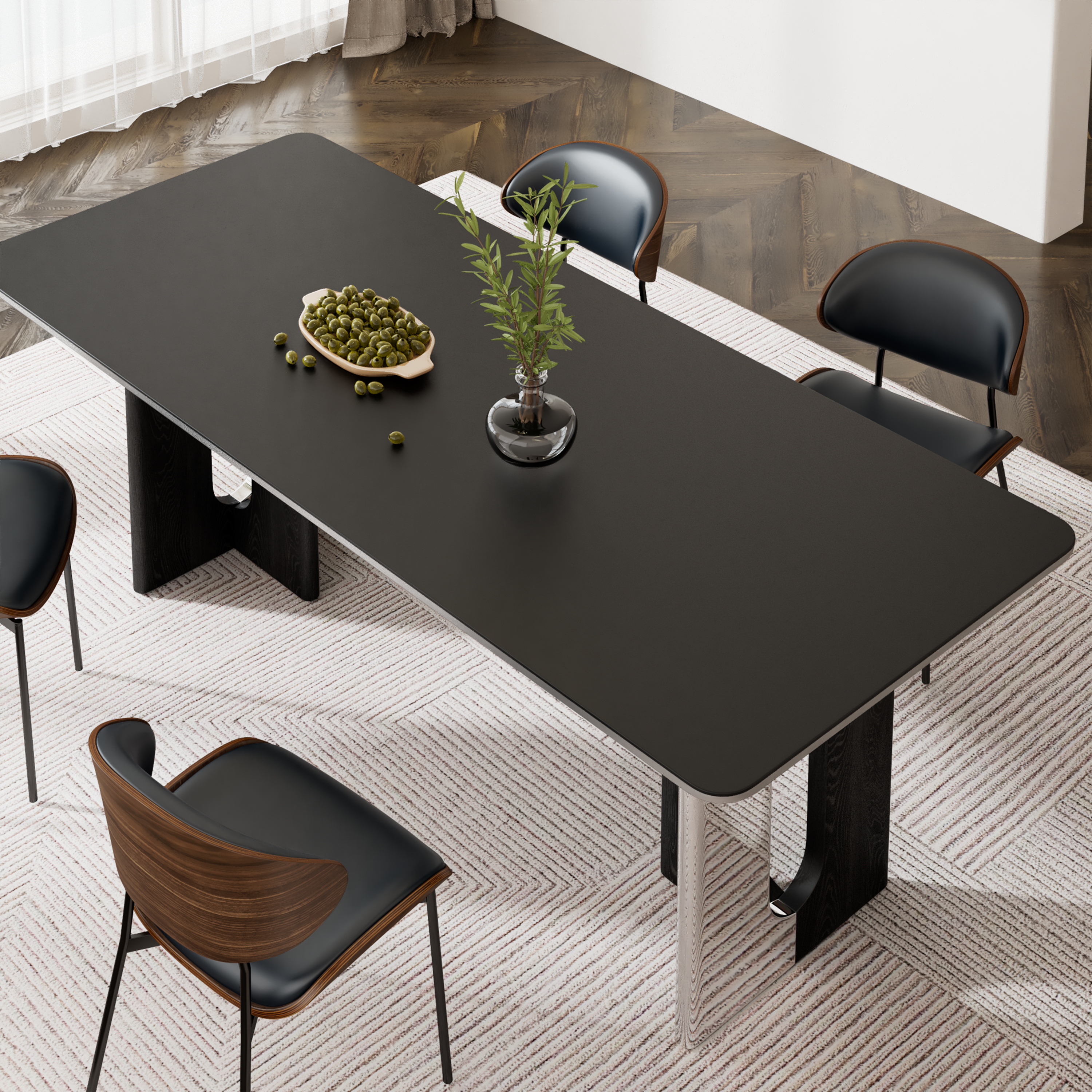 This dining table features clean lines as its primary design element, seamlessly blending classic style with everyday functionality. It presents a simple and bright aesthetic for dining. Whether it's for casual conversation or simply savoring life's little pleasures together, it's the perfect choice.