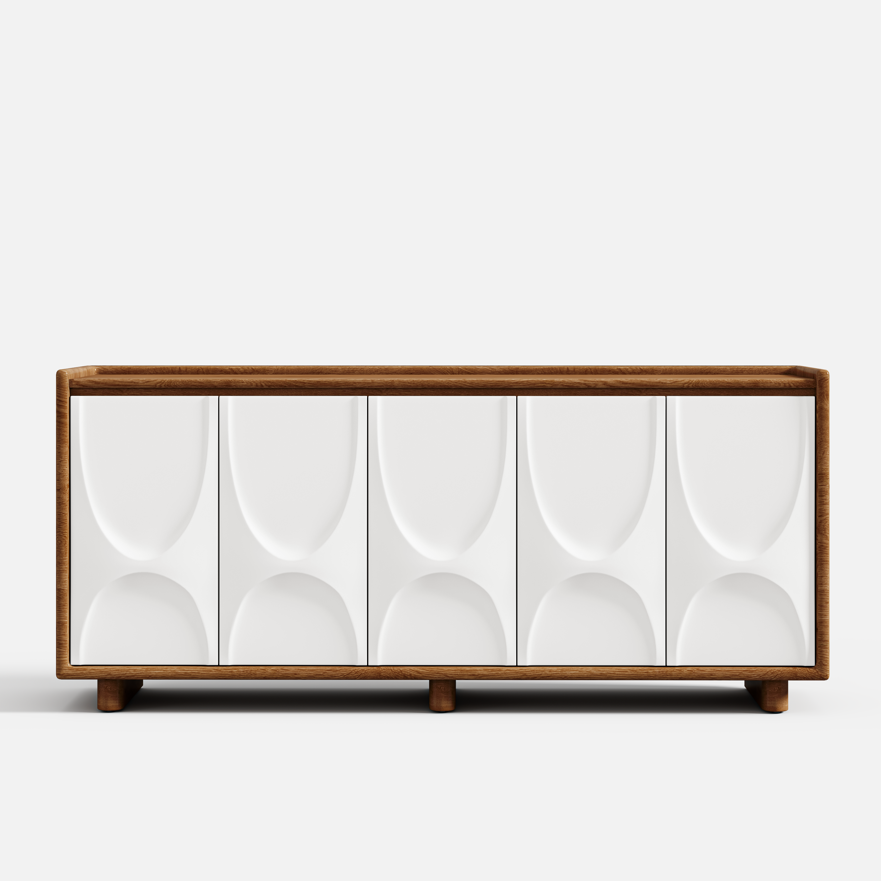 Beautifully crafted with carved wooden doors and flexible interior shelves, this sideboard blends decorative charm with versatile storage. It is the perfect choice for dining rooms, entryways, or any space that requires both functionality and style.