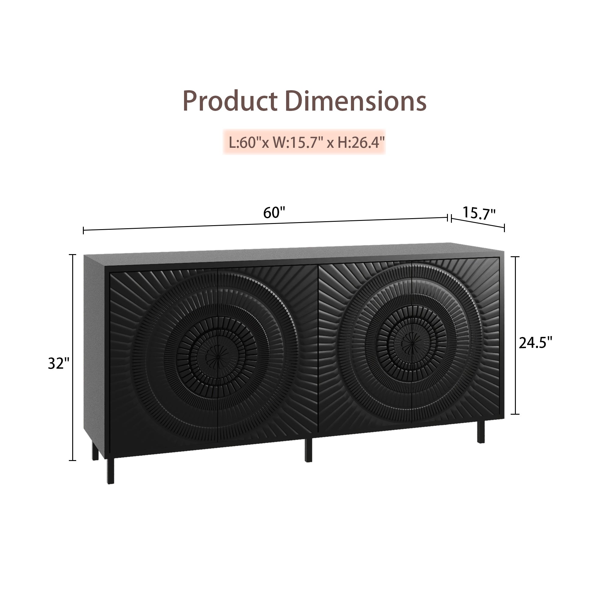 This modern black wood sideboard blends sleek design with versatile storage. With ample cabinet space, it functions as a buffet, media console, or hallway accent, making it perfect for dining rooms, living areas, kitchens, or entryways.