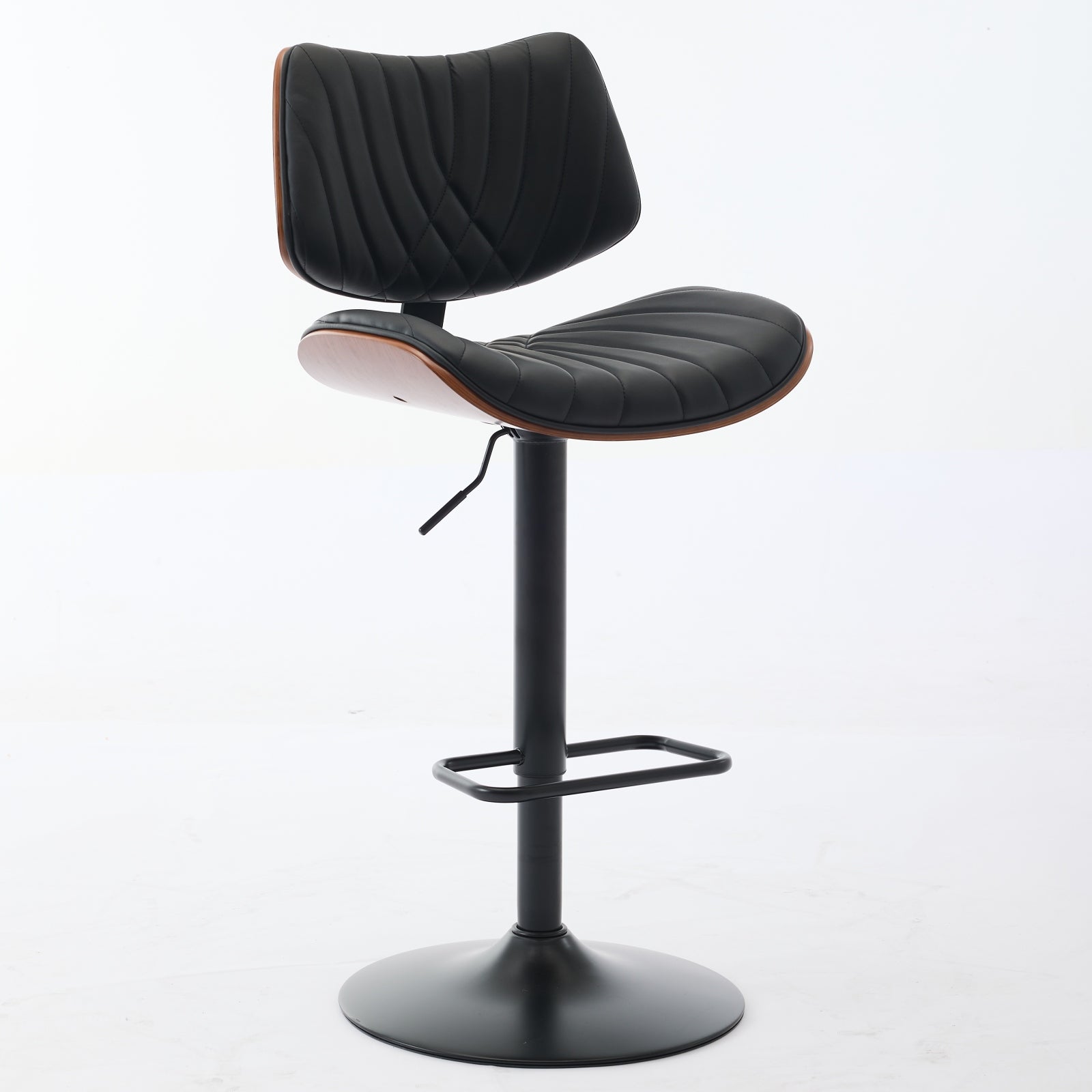 A modern take on mid-century design, this bentwood bar stool pairs a walnut frame with black leather upholstery for timeless appeal. The 360° swivel seat and adjustable height offer tailored comfort, ideal for kitchen islands, dining spaces, or cafés.